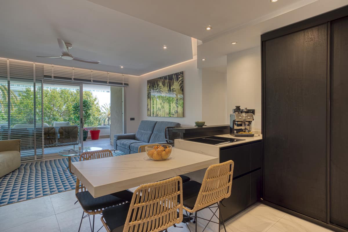 Spectacular and luxurious apartment with 3 bedrooms and 2 bathrooms, a spacious and bright living-dining room, and a covered terrace with sea views. Very close to the beach, this newly built apartment is located in a prestigious residential area in San Pedro de Alcántara, Marbella. We present this magnificent apartment with 121 m2 of built area and a 36 m2 covered terrace with partial views of the sea and the communal pool and garden. Gated complex. Underground parking. The apartment also comes with a parking space and a storage room. This brand-new, recently built apartment has all the amenities and details of a luxury apartment and it is very close to the beach. Built-in wardrobes in all bedrooms. The master bedroom has a large and a small dressing room, as well as an en-suite bathroom. Both bedrooms and the living-dining room have direct access to the enormous 36 m2 covered terrace with partial views of the sea and the residential garden. Electric blinds in all bedrooms. The kitchen is equipped with Siemens appliances and meets all the requirements of a luxury apartment. The apartment is equipped with aerothermal heating for water heating and a Siemens washing machine. Air conditioning is hot/cold. Don't miss this opportunity to move into this magnificent luxury apartment very close to the beach in San Pedro de Alcántara. Close to international and national schools. Near shops and within walking distance of all parts of San Pedro de Alcántara.