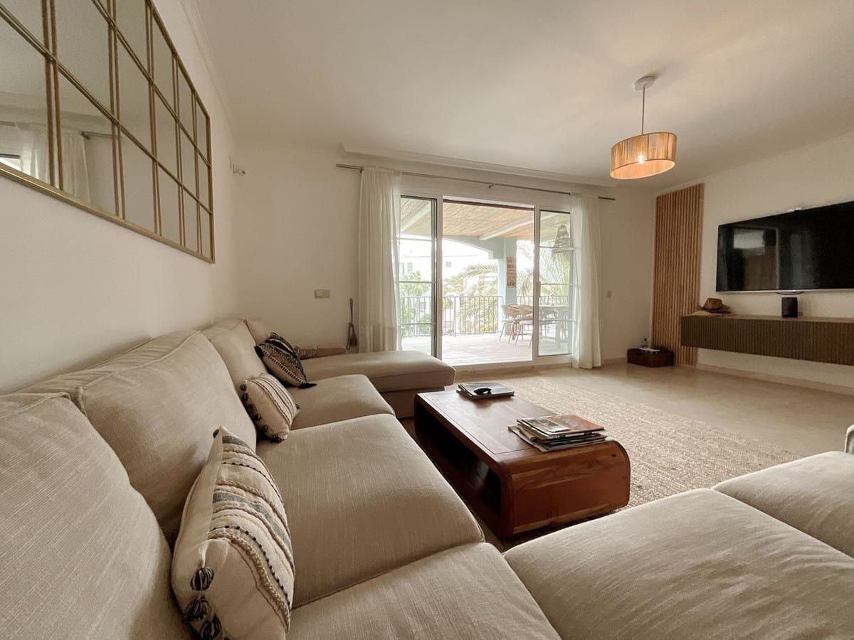 Recently renovated, it features a light and relaxed style. Its soft tones enhance the generous spaces of the living area and terrace, which, when the doors are open, merge into a seamless open space of over 70 m² dedicated to leisure and socializing.