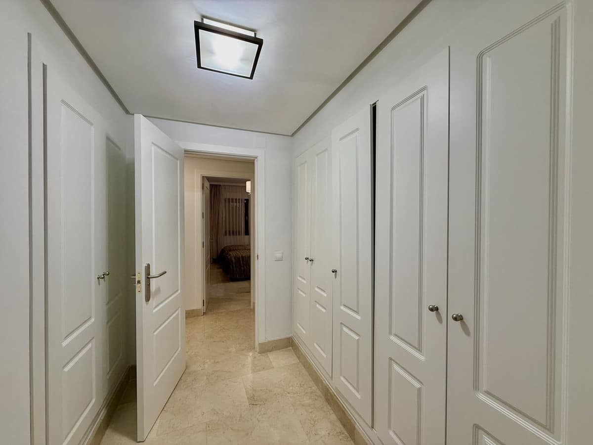 Wonderful three bedroom, south east facing duplex penthouse in the exclusive and gated community of Monte Paraiso on the Golden Mile, with 24hr security, several outdoor swimming pools, a bar/restaurant, children’s play area, fully equipped gym, steam room, sauna, squash court, massage room, indoor heated swimming pool and tropical gardens that are maintained to the highest standards. As well as all this it is only a short walk to the famous Puente Romano Hotel and the beach. The main level of the property has a large living and dining area with patio doors leading out to the spacious terrace with amazing sea views; a fully fitted kitchen with separate utility room; two guest bedrooms, one with a private terrace with stunning views to La Concha mountain; and a guest bathroom. The upper level leads to the master suite with vaulted ceilings, a Jacuzzi bath and access to a private terrace with spectacular sea views. Other features include marble floors, fireplace, fitted wardrobes, hot and cold air conditioning, two private parking spaces and a storage room.