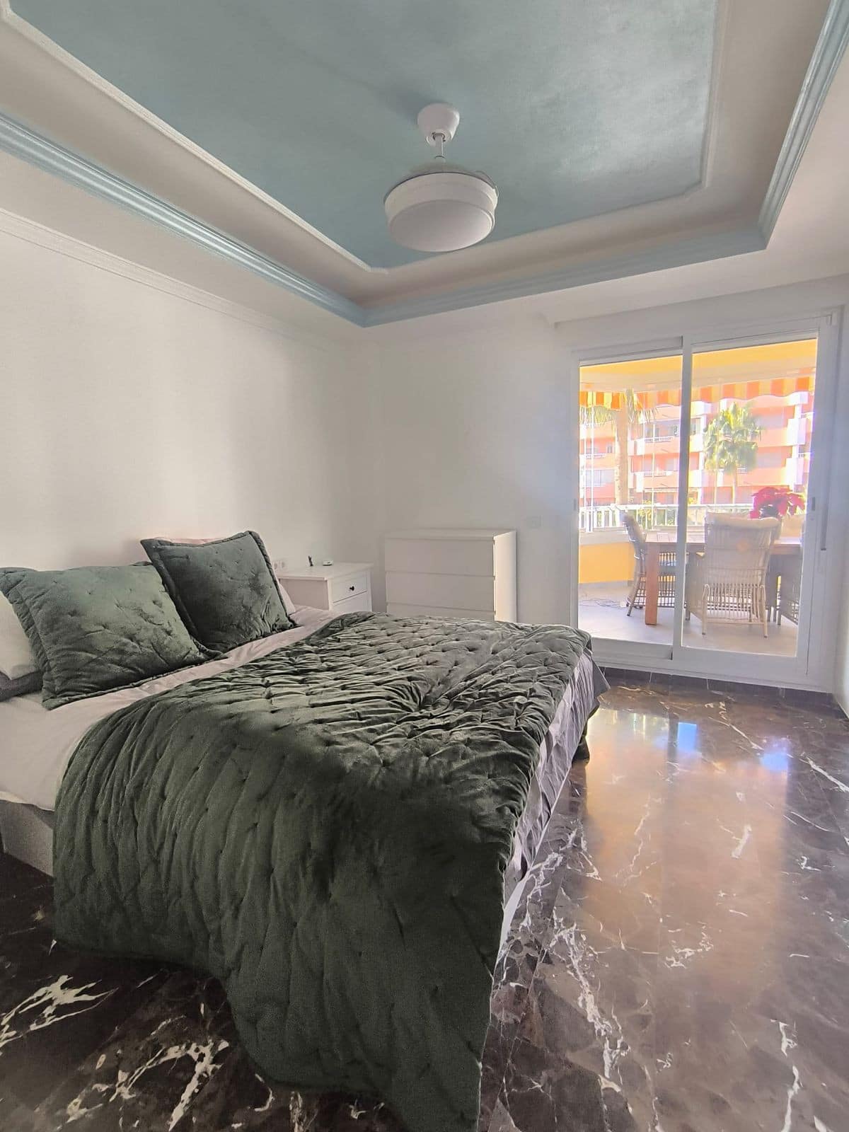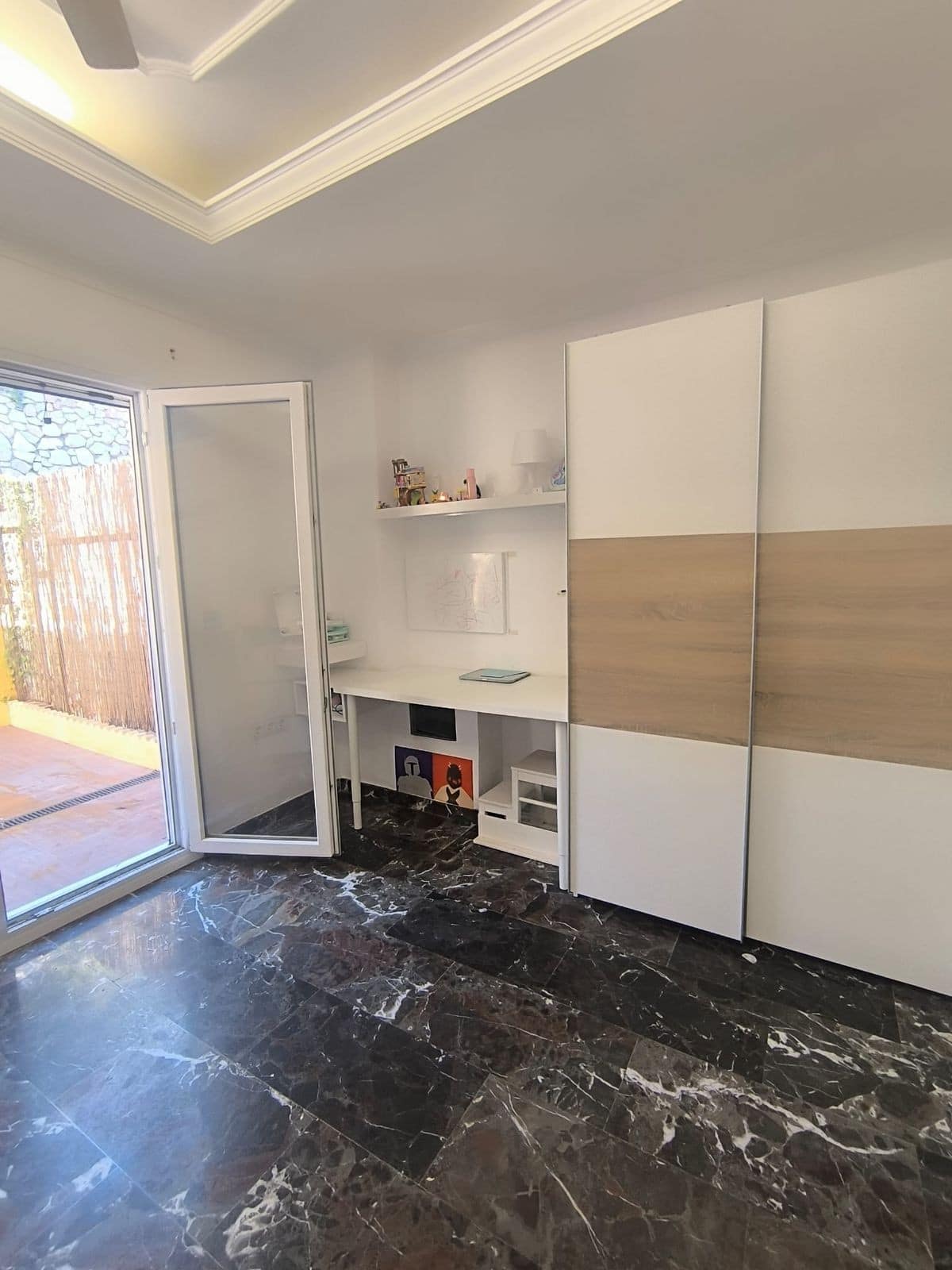 The bright living-dining room provides access to a fantastic glazed terrace with a Lumon system, perfect for enjoying the views of the urbanization and the sea year-round.