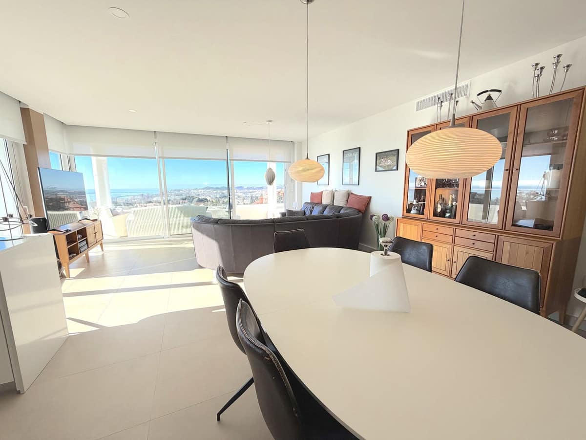 One of the apartment’s standout features is its impressive 35 m² wrap-around terrace. As a corner unit, the home benefits from an abundance of natural light and truly unbeatable panoramic views spanning the surrounding mountains, coastline, and the Mediterranean Sea. The expansive outdoor space offers multiple areas for relaxing, dining, and enjoying the scenery year-round, perfectly blending indoor and outdoor living.
