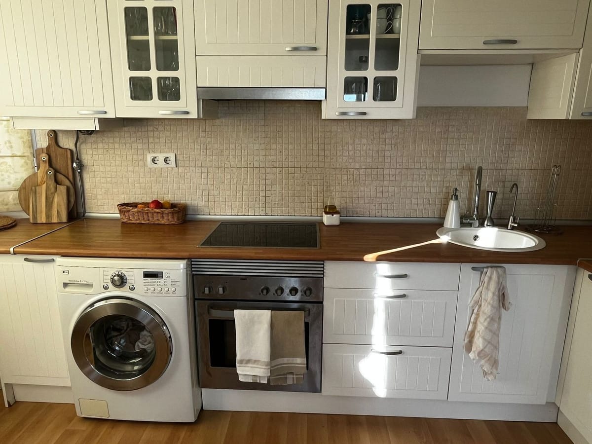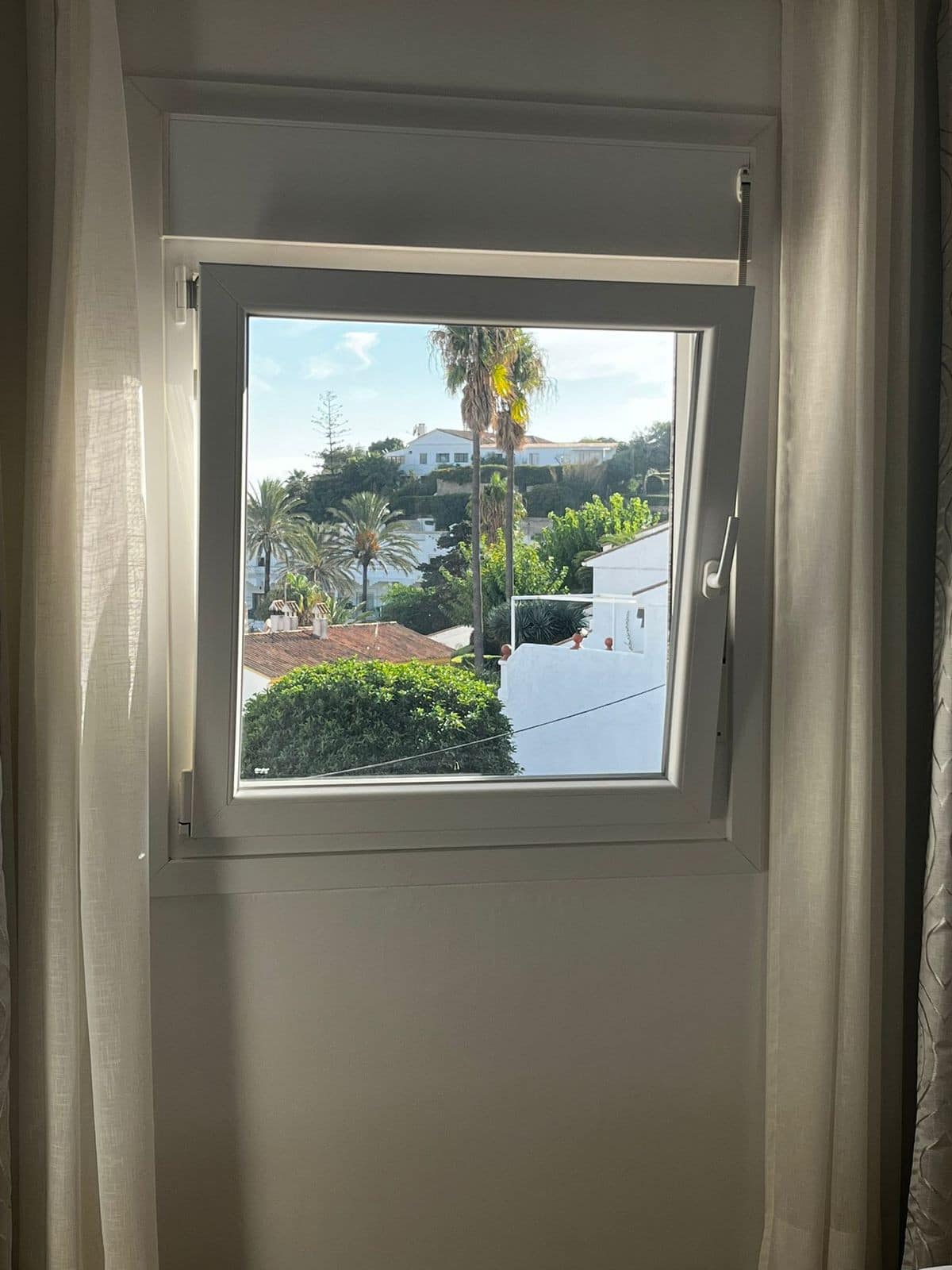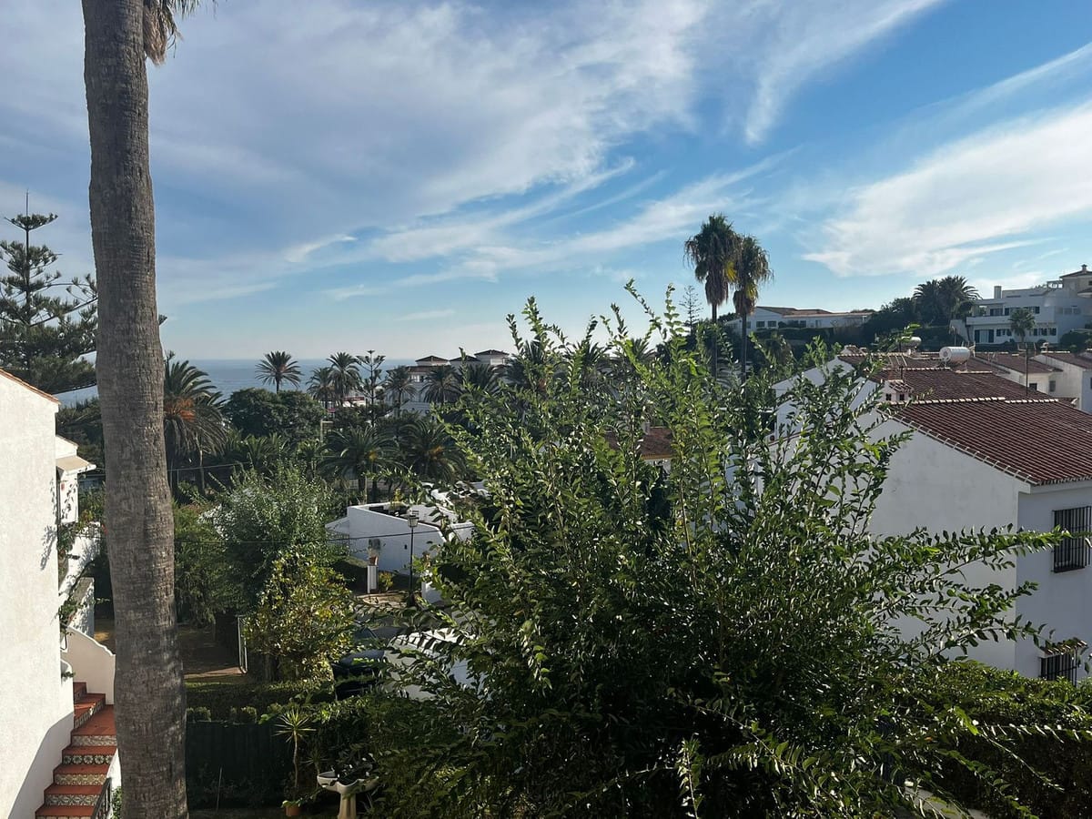 Built in 1980 and spanning 85 m², this bright first-floor property features three comfortable bedrooms with built-in wardrobes, one full bathroom, a welcoming living-dining area, and an independent kitchen. The standout feature is the generous terrace with stunning south-facing sea views, perfect for year-round enjoyment of the Mediterranean climate, al fresco dining, or relaxation. Additional comforts include air conditioning and a private garage space for added convenience and security.