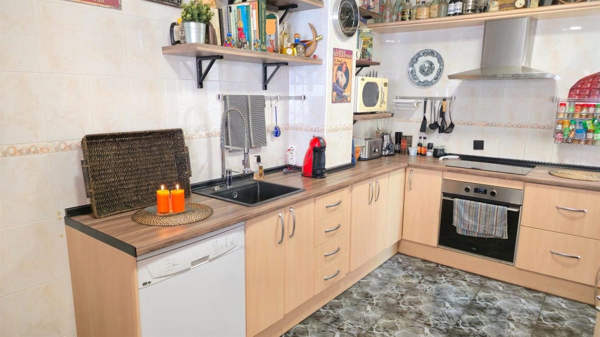 The interior features three spacious double bedrooms, all with large fitted wardrobes, two full bathrooms, and a guest toilet. The living area is the heart of the home: bright, airy, and sun-drenched thanks to its large windows. The semi-open kitchen, featuring its own window for natural ventilation, offers the perfect balance between modern integration and independence. Notably, the entire property was fully renovated just five years ago, meaning it is in pristine condition and ready for immediate move-in.