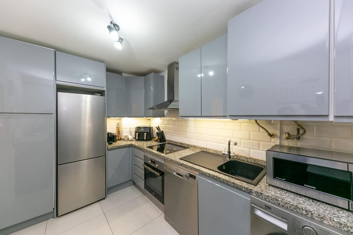Independent, fully equipped kitchen with ample storage space.