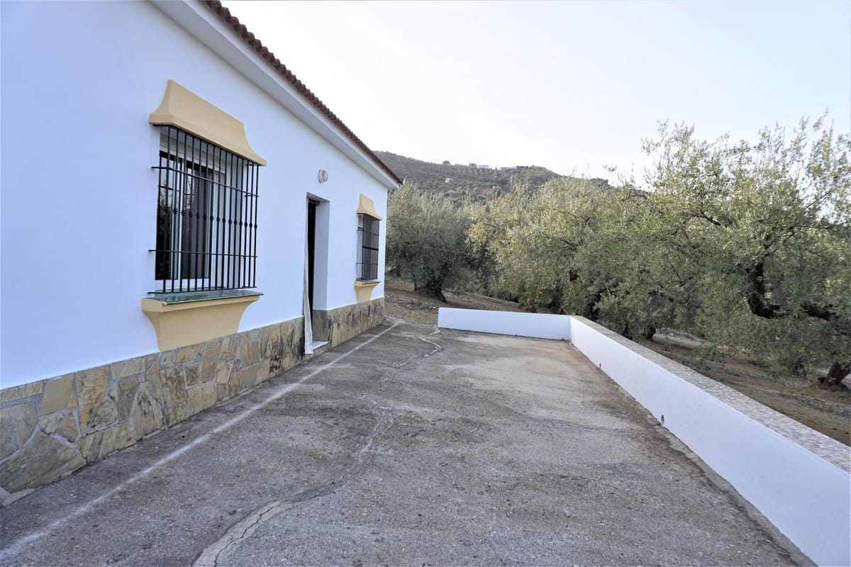 Just outside Alcaucin and within walking distance of the village you can find this finca with a well-maintained country house of 121 m2. In front of the house there ́s a spacious terrace overlooking the olive grove of a 130 olive trees and other fruit trees such as oranges, lemons and medlars. A huge water storage of 100.000 litres provides the necessary watering. It is also connected to the village water supply of Alcaucin. The entrance leads into a spacious living/dining room with a fireplace, followed by a large kitchen with lots of storage space. Down the hallway there are 3 double bedrooms and a bathroom with bathtub. The attached garage could be converted into a fourth bedroom with access to the house. All windows have shutters and mosquito nets. The complete plot of 20.000 m2 is fenced with a gate to the driveway. We are pleased to be able to present this dream home to you soon, either in person or via a virtual viewing. Because this world is unique – just like our Axarquía. In Andalusia. On the Costa del Sol. Here, on the sunny side of life…