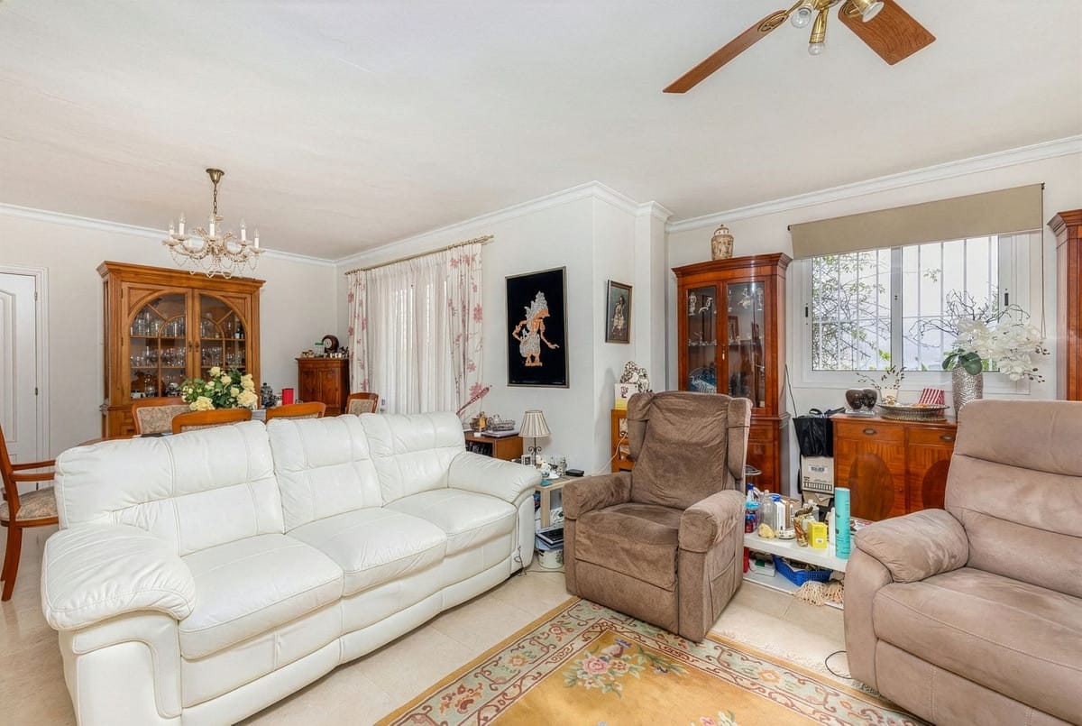 The villa offers a large and wide entrance hallway, open plan staircase, a good-sized kitchen, open plan living and dining room, three bedrooms, three bathrooms, a summer and winter garden-kitchen room, a separate office or playroom and two brick-built storerooms. Additionally, the low maintenance garden is stocked with numerous types of fruit trees, and has, arguably the best views from any swimming pool on the urbanisation.