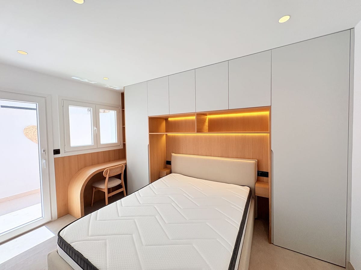 Residents benefit from a host of premium features designed to enhance comfort and security, such as air conditioning, electric blinds, aerothermics, fibre optic internet, an alarm system, surveillance cameras, video entrance, and an armoured door. The property is offered fully furnished and in excellent condition, with additional amenities including a sauna, gym, communal pool, communal garden, and a private garage. The walk-in closet, garden and pool views, and the proximity to both leisure and essential services further elevate the appeal of this exquisite home.