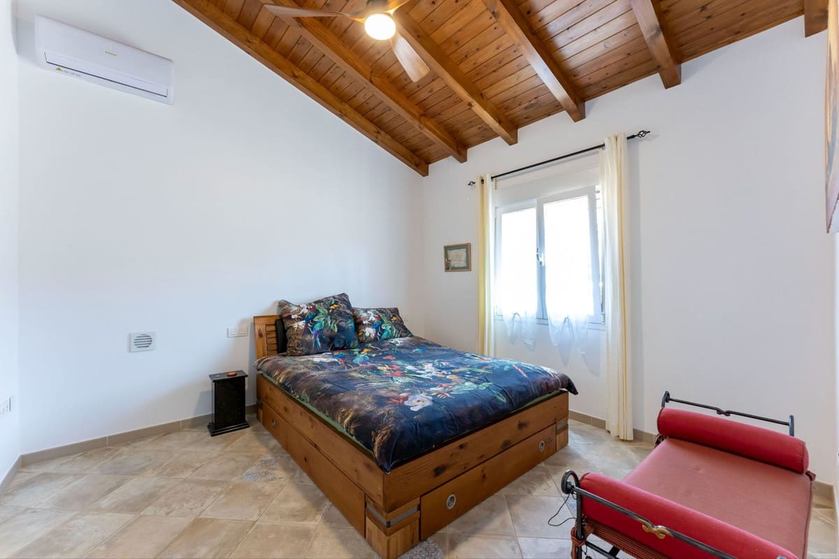 The home features three bedrooms, one bathroom, a separate kitchen, and a warm, inviting living-dining room with a fireplace – the perfect space to slow down and enjoy. The master bedroom is a true retreat: a split-level suite with the bed on a mezzanine and, below, a walk-in wardrobe and cozy private sitting area.