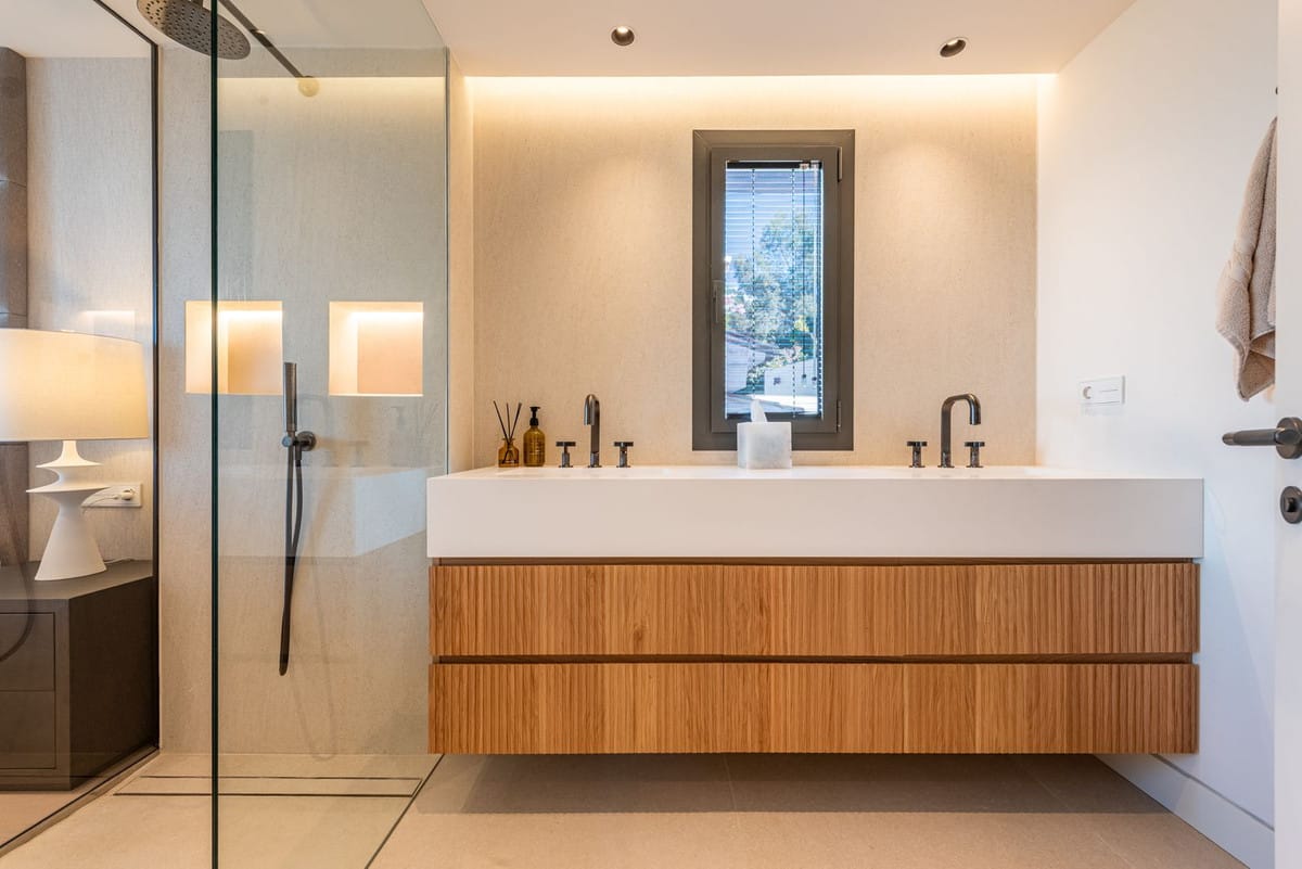 The outdoor spaces are equally impressive. Facing southwest, the terrace offers spectacular sunsets, along with panoramic views of the mountains, lush nature, and the Mediterranean Sea. A sleek modern outdoor kitchen and stylish al-fresco dining area make outdoor living effortless and enjoyable.