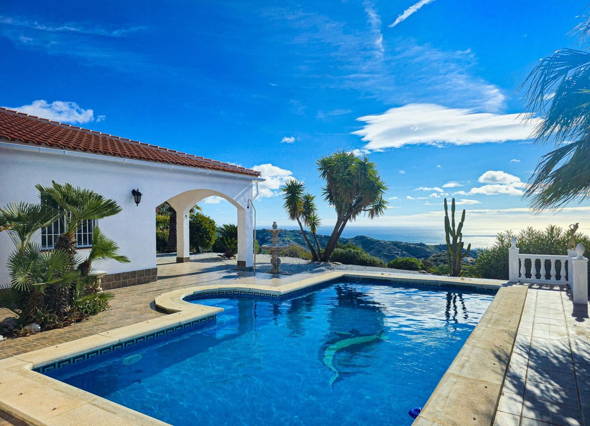 Discover this beautiful detached house in Arenas, Málaga (Costa del Sol) with stunning views over the Mediterranean Sea. This villa combines tranquillity, privacy and comfort in a unique location in the hills, a short drive from the coast (20min.), 15 minutes from Algarrobo, Malaga Airport in less than 55 minutes.