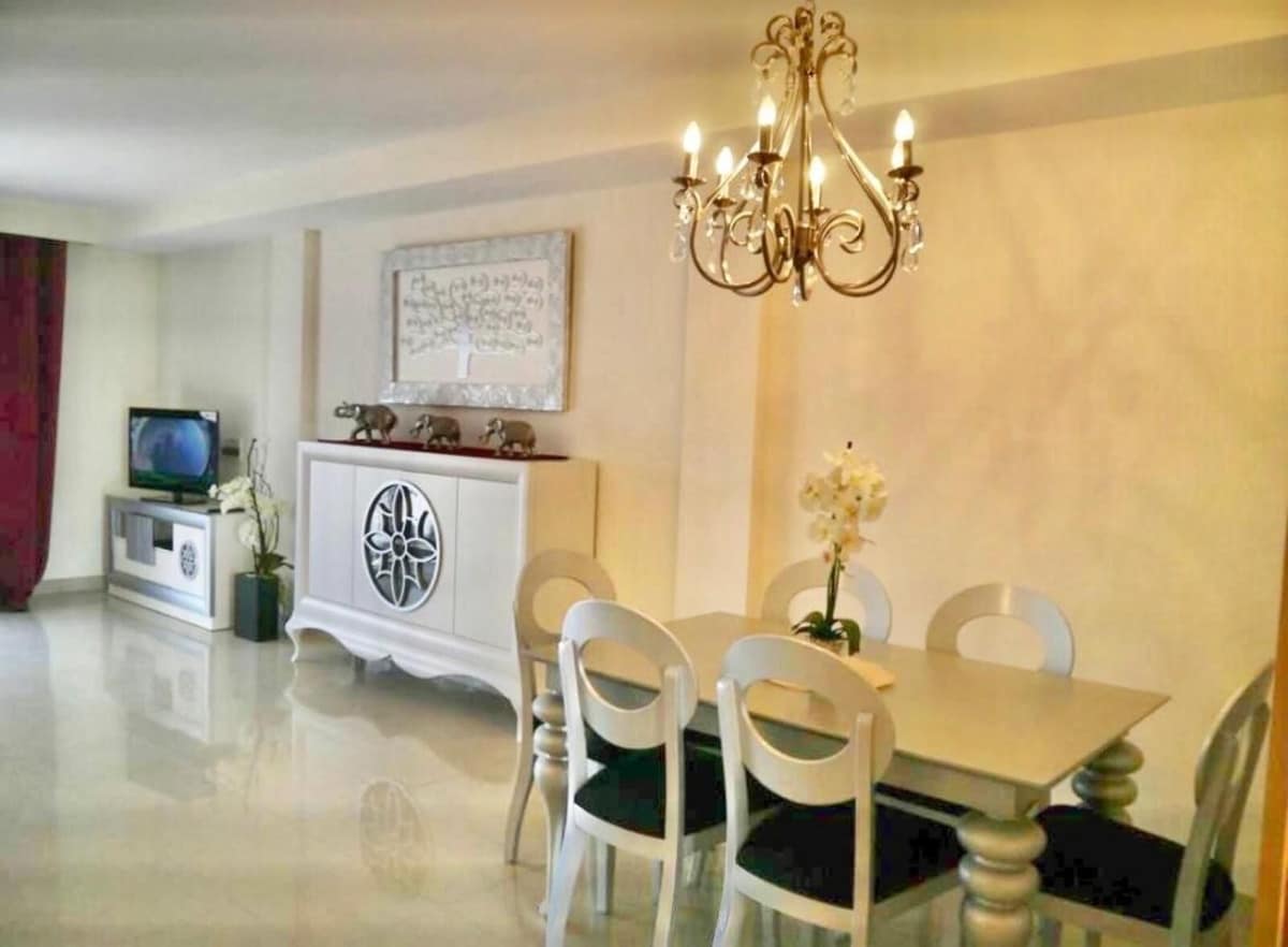 The property is distributed over several floors and has a total of 3 bedrooms, two bathrooms plus a guest toilet, a living room with an open-plan kitchen, a terrace with a garden, a solarium of approximately 35m2, and a basement currently used as a gym and storage area.