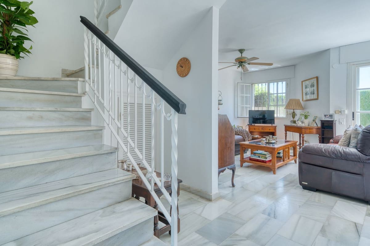 Set in a secure gated community just 5 minutes walk from all general amenities, restaurants, and 3 minutes further to the beach, this elegant three-bedroom end-of-terrace townhouse delivers standout value in one of Estepona’s most desirable residential zones. Perfectly positioned on the New Golden Mile, this south-facing home is light-filled, spacious, and ideal for relaxed Mediterranean living. Spread across three levels, it features three generous bedrooms, two sleek bathrooms, a guest WC, and two private rooftop terraces, perfect for sun-soaked lounging or evening drinks under the stars. The property has partial sea views from one of the two roof top terraces, whist the remainder of the property has wonderful garden and swimming pool views, plus the property has a very rare front and rear garden, offering a true sense of space and privacy. Inside, the layout flows effortlessly with modern finishes throughout, while outside, residents enjoy beautifully landscaped communal gardens and a serene swimming pool. Features include double-glazed windows, private gated parking, and walking-distance access to golf courses, the beach, and top dining spots make this an exceptional choice for full-time living or a high-performing rental. A superb home in a fabulous location, ready to move into right now!