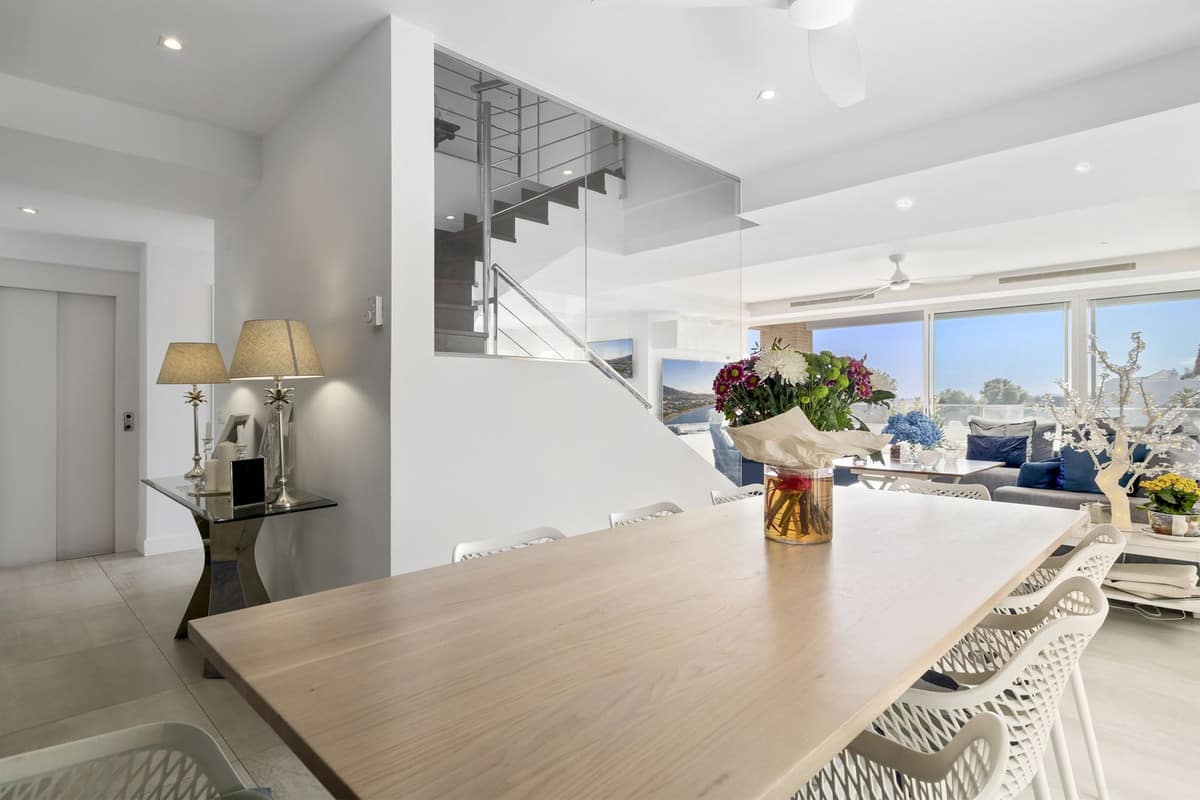 Located in the serene enclave of Torremuelle, this detached villa offers an unmatched blend of luxury and tranquility. Nestled along the Costa del Sol, this villa boasts breathtaking panoramic views of the Mediterranean Sea, complemented by lush greenery and picturesque surroundings. The villa’s modern design is seamlessly integrated into the natural landscape, featuring expansive glass walls, spacious terraces, and open-plan living areas that bathe the interior with natural light.