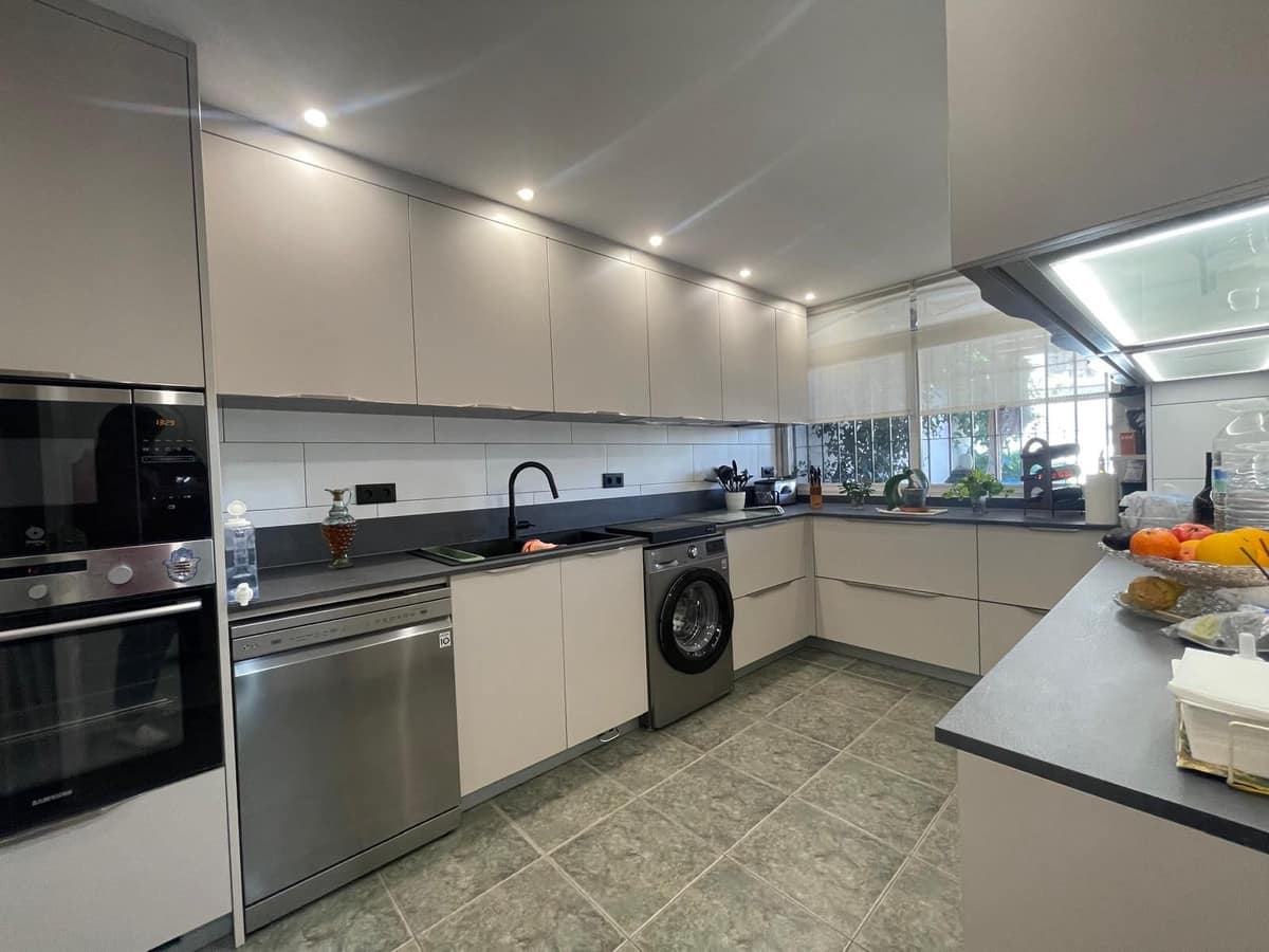 Outside, you can enjoy a 183-square-meter plot that houses a private pool, perfect for relaxing and enjoying the Mediterranean climate, as well as a sauna for wellness and relaxation. The property is equipped with an elevator for added convenience and a versatile attic that can be adapted for various uses.