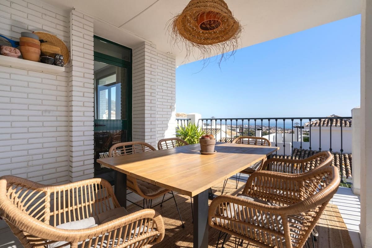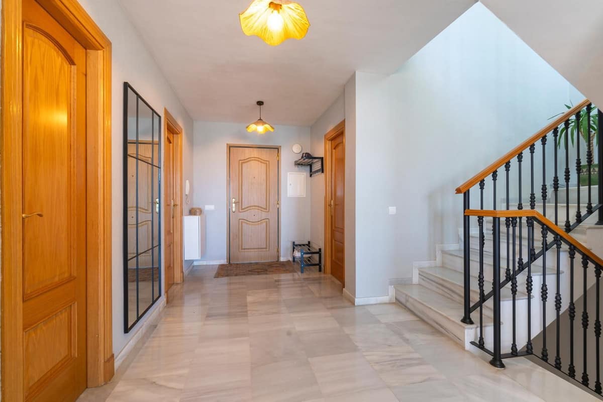 A modern semi-detached house with views of the sea and mountains. It consists of 3 bedrooms, 2 bathrooms, a living room with a kitchen, 2 terraces and a solarium with a jacuzzi. It also has a covered parking space and a storage room. The house has been modernly renovated. It is located in a residential area with a swimming pool and garden, just 10 minutes by car from the beach and 15 minutes from Malaga airport, in a quiet residential area, close to all kinds of services: restaurants, shops, pharmacies, schools. Ideal for permanent residence or holiday home.