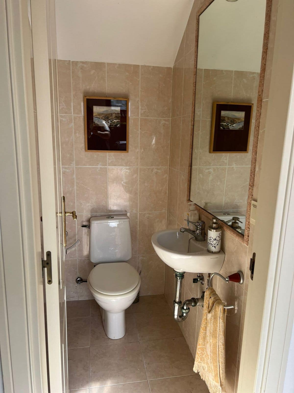 On the first floor, two well-appointed bedrooms provide cozy sleeping arrangements—one with a double bed and the other with two single beds. The top floor is reserved for the master suite, complete with a private bathroom and an exclusive terrace, offering the perfect spot to enjoy quiet moments in the sun.