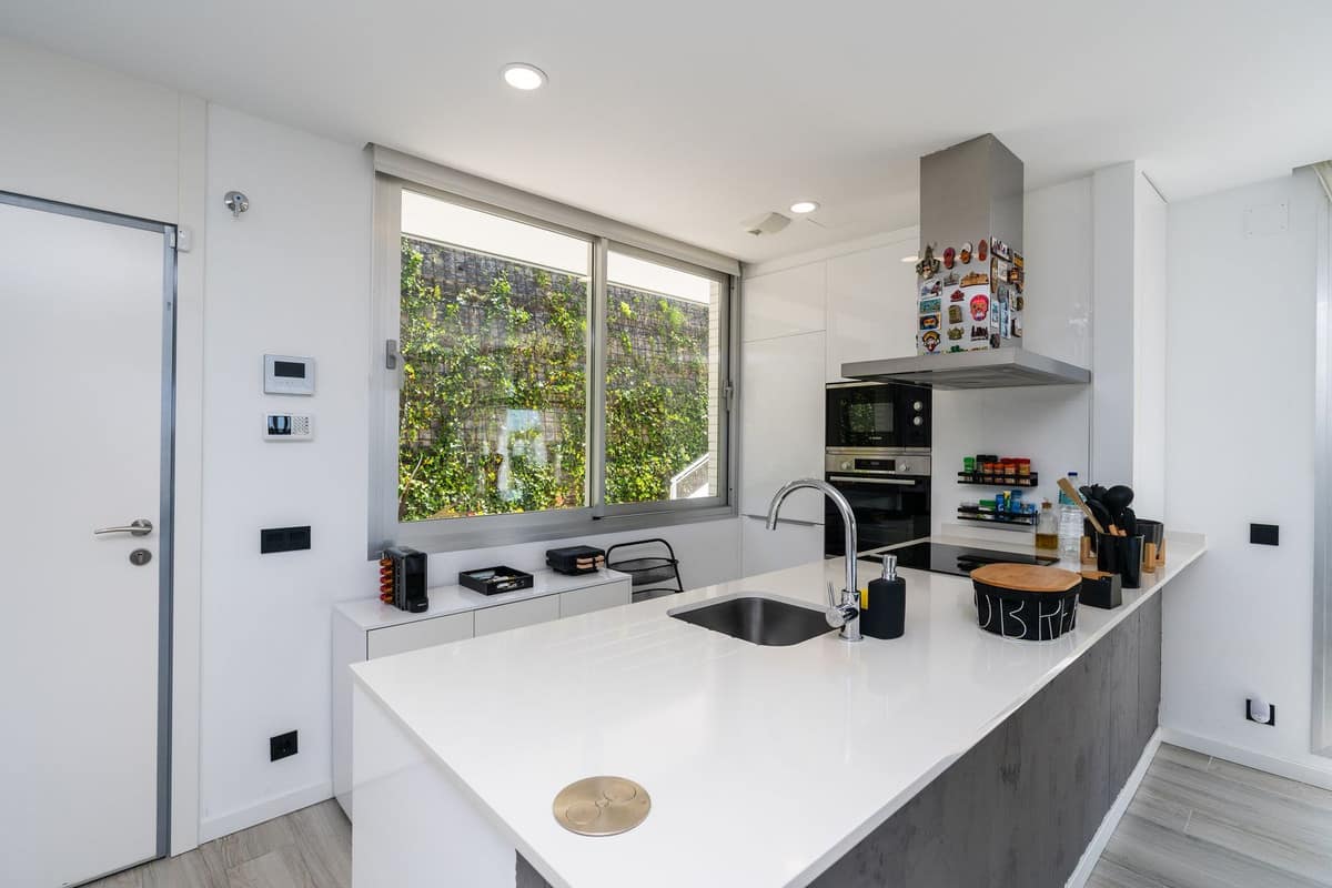 On the top floor, the fully furnished solarium is ideal for enjoying evenings under the stars or sunsets with panoramic views. Equipped with a retractable awning, and pre-installed water and electrical connections, it’s ready for an outdoor kitchen or chill-out area.