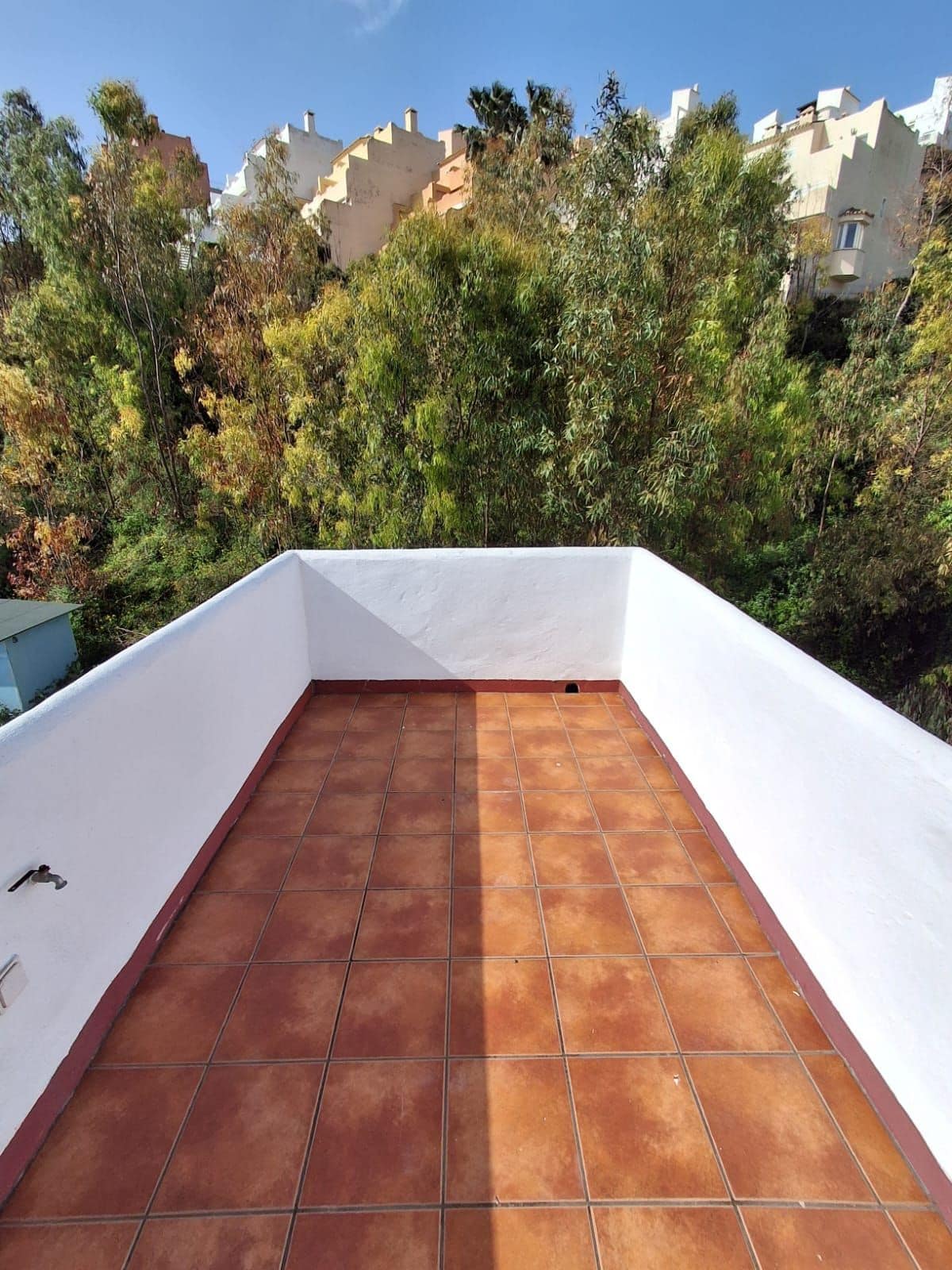 On the first floor you will find a split level with 2 guest bedrooms that share a full family bathroom, and the master bedroom with an ensuite bathroom. All bedrooms are double bedrooms with fitted wardrobes, shutters and blinds. Up one more level you will find the private 25m² roof terrace with beautiful mountain, garden and sea views from where you could sunbathe all year round in complete privacy. There is also a very good sized storage room on the solarium.
