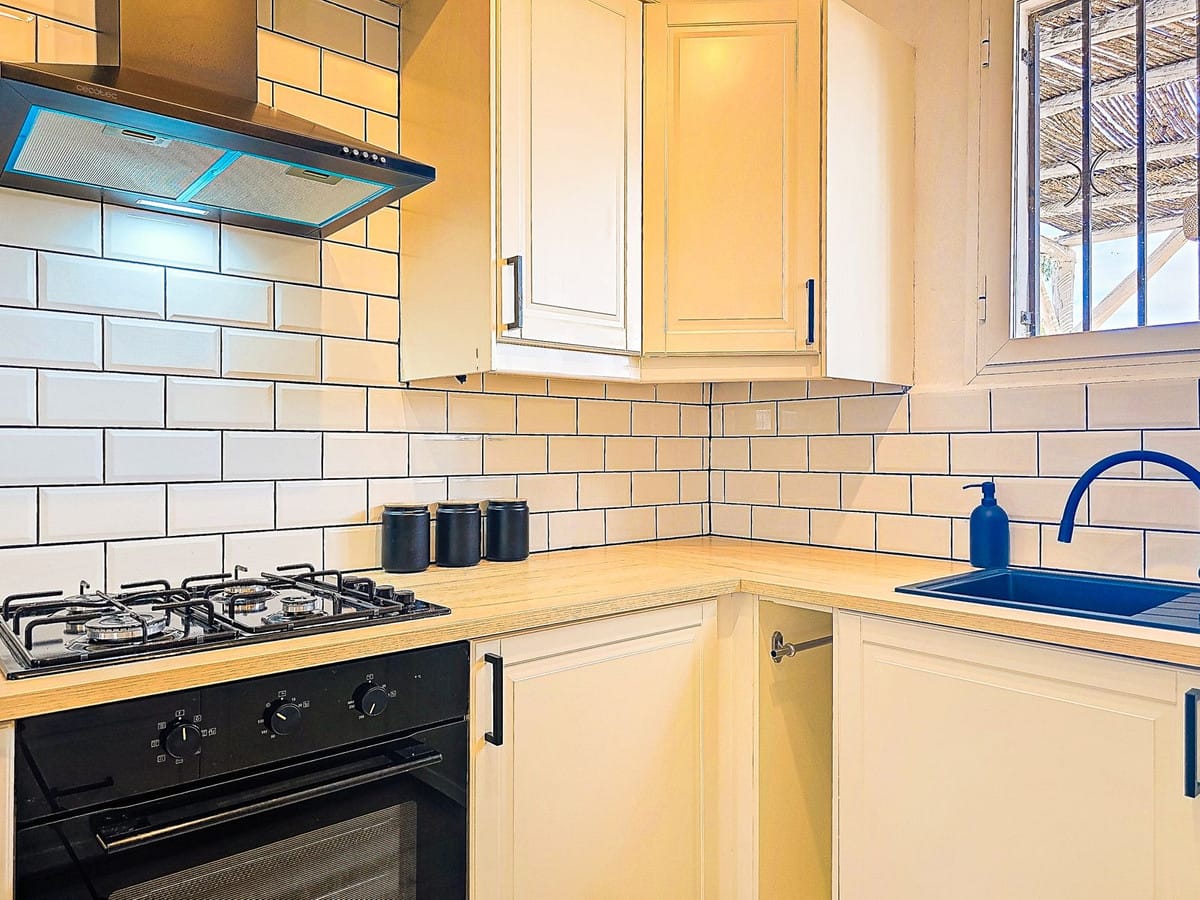 On the same level, there is a harmonious modernised kitchen with a breakfast bar and generous dining area, ideal for entertaining. Beyond the kitchen-dining space are a stylish family bathroom and two further double bedrooms, one with direct access to the second terrace.