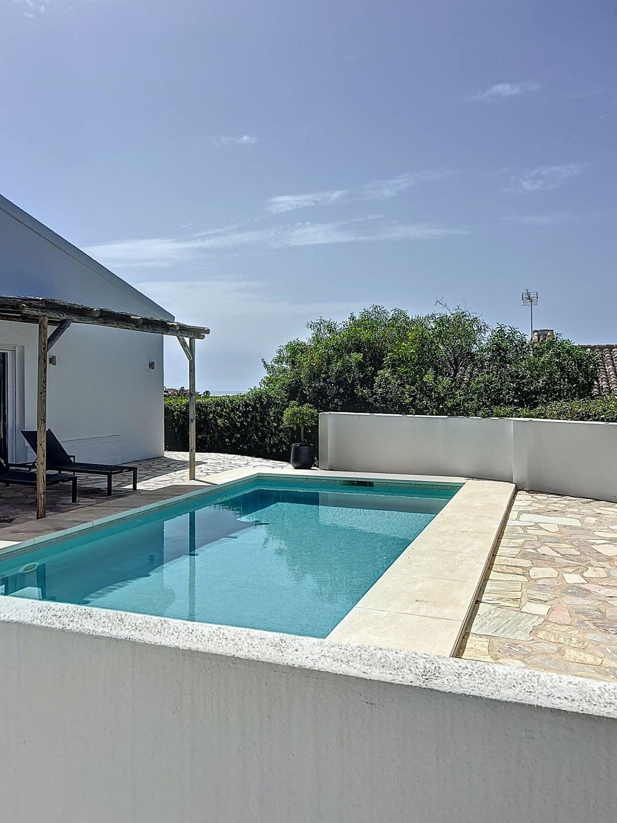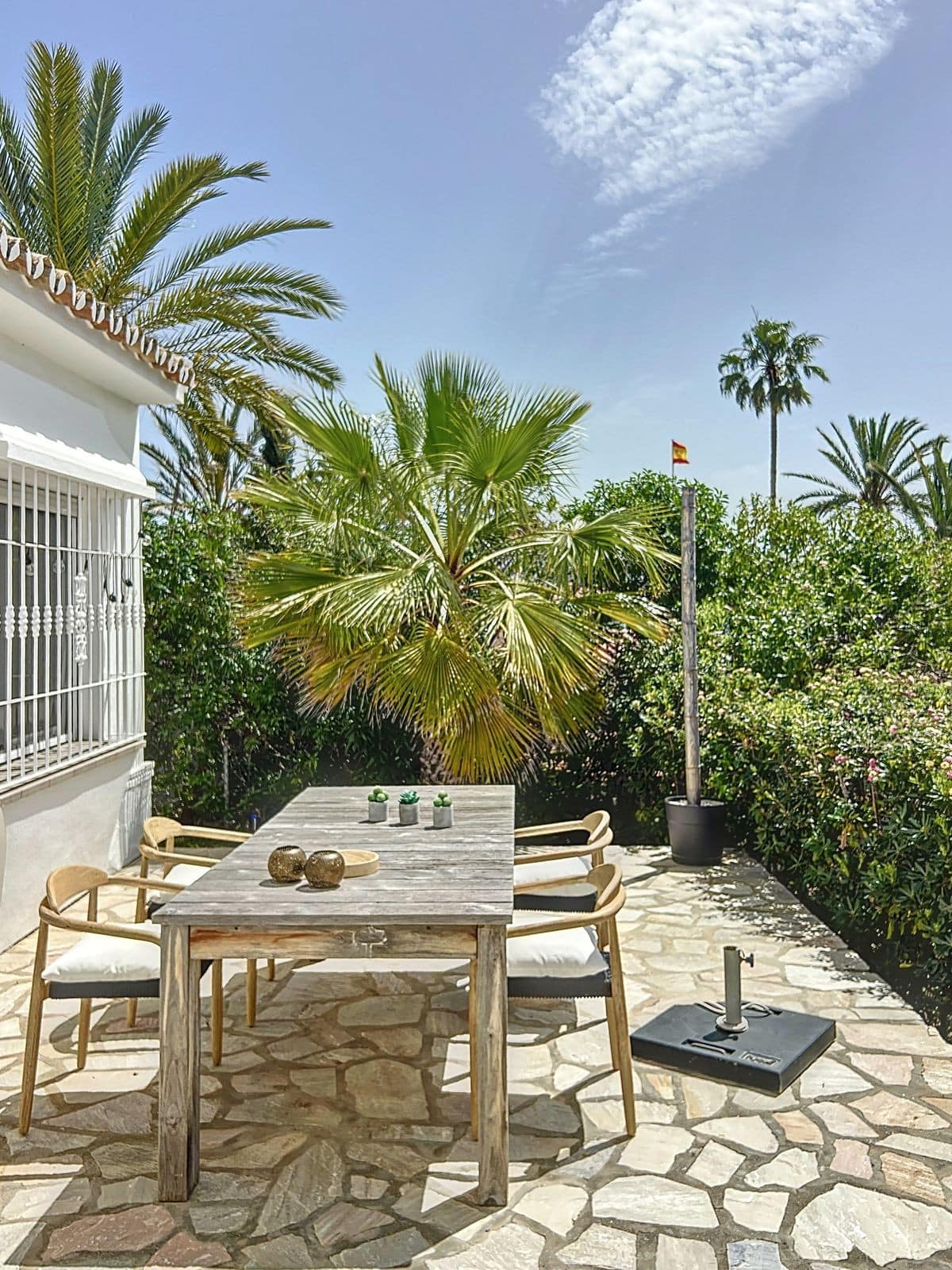 Set on a nearly 300 m² private garden plot, the home is just a short walk to the picturesque El Faro beach,