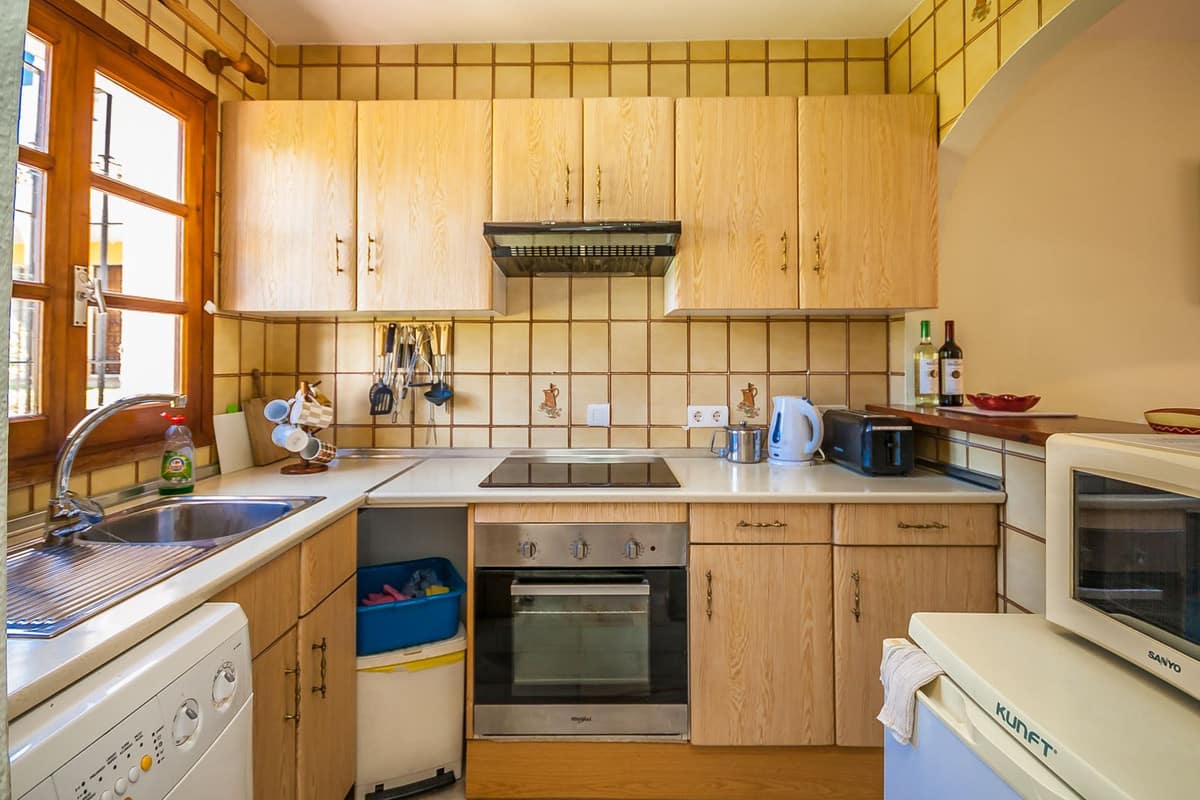 Refurbished to high standards, the villa features a bright living/dining area with a stunning cathedral ceiling