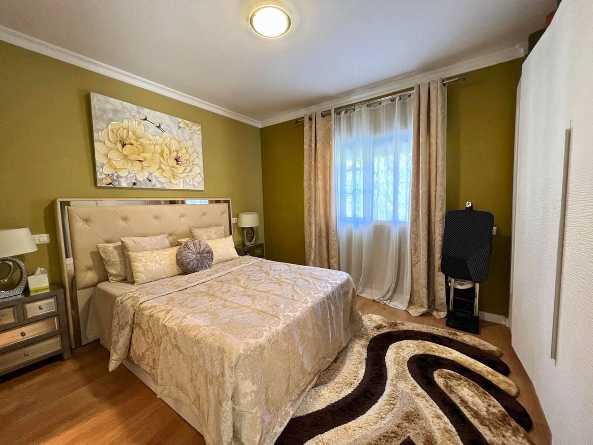 The open-plan kitchen flows seamlessly into the generous lounge and dining area, creating a bright and welcoming space ideal for entertaining. Step outside and enjoy your private oasis with a sparkling pool, sauna, and a lush garden.