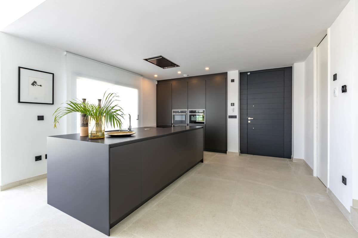 The Island comprises 3, 4 and 5 bedroom luxury dwellings, 319 to 449 square metres, including ground floor, terraces and solarium. Accentuating the natural light has been of paramount importance, with substantial windows and minimum profiles (just two-centimetre aluminium frames) and shafts of light accessing through the staircase coffering. Also complementing this open, innovative design are large-format ceramic floor tiles.