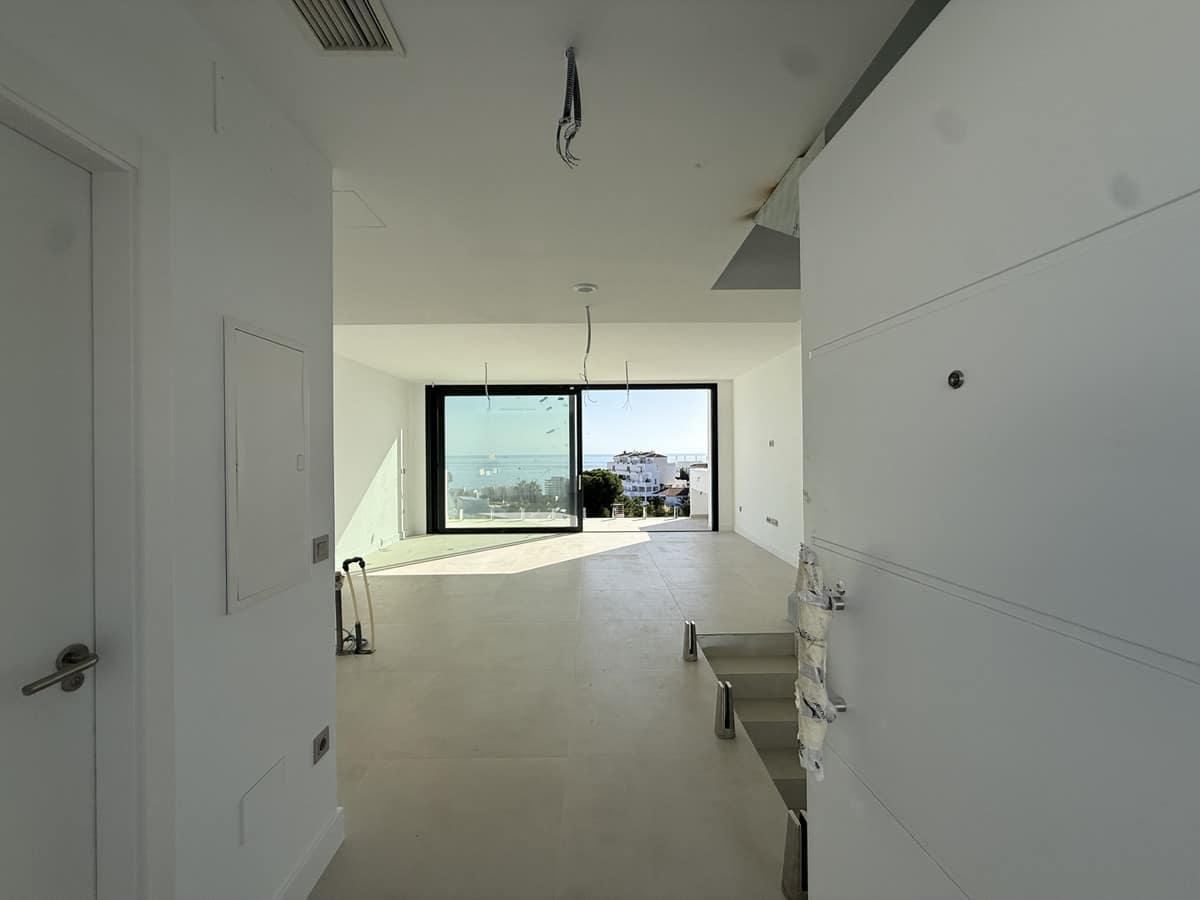 There are under construction four semi detach-style villas, of which only one is for sale. This elegant villa has three bedrooms, three bathrooms (two of which are en-suite and a separate toilet with underfloor heating), a spacious American kitchen, a dining area and a large living room. The house is on three levels and has wonderful sea views from all floors. Construction is well underway and is expected to be completed by the end of 2025.