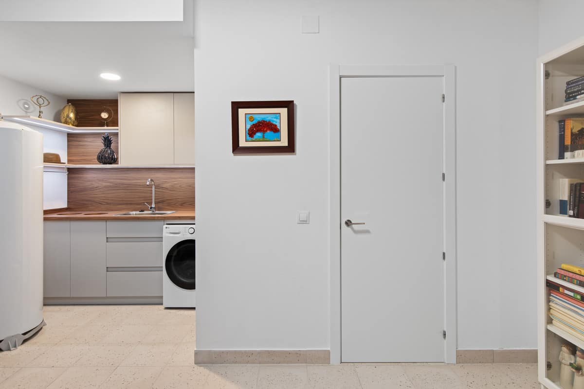 The lower level, which can also be accessed from street level, includes a private closed garage for a designated golf cart parking area, and a separate laundry room. This floor also offers two double bedrooms — one with a shared bathroom and one en suite — making it ideal for family or guests.