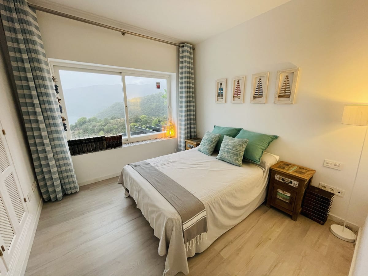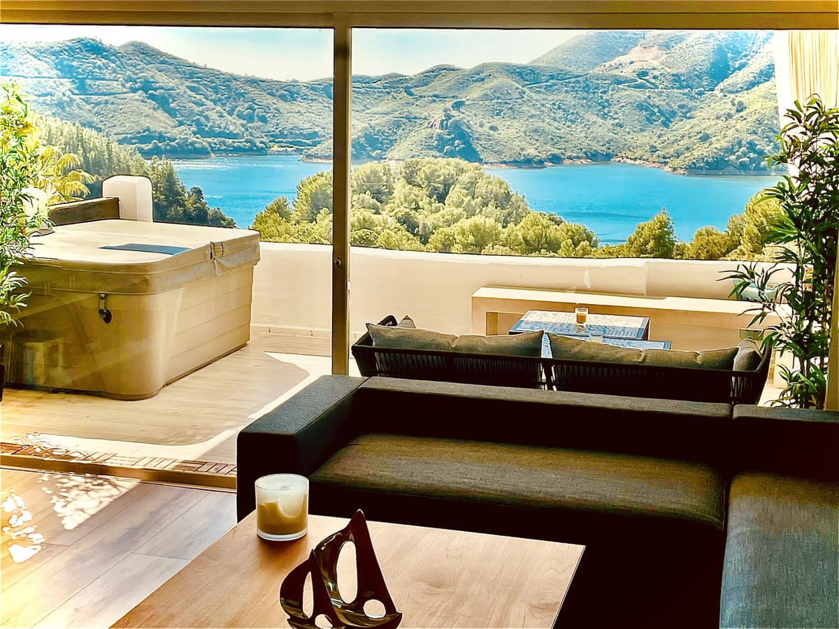 Located in the exclusive, gated Zahara de Istán community, just a few minutes from Marbella, this semi-detached home is a true luxury on the Andalusian coast. From the moment you enter the community, the tranquility and privacy offered by this enclave are immediately apparent. The home, which stands out for its unparalleled views of the lake and surrounding mountains, opens to a spacious and bright living room, an ideal space to enjoy the natural surroundings. The kitchen, open to the living room, is fully equipped and complemented by a fireplace that heats the entire floor, creating a very cozy atmosphere. On this level, there is also an elegant dining room, a bathroom, and a magnificent terrace, from which you can enjoy unforgettable sunsets. The terrace features a jacuzzi and a comfortable seating area, perfect for relaxing outdoors.