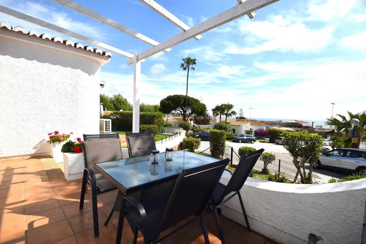 Rarely available single level villa, perfect as a holiday home or a permanent residence. Located in one of the first communities built around La Cala, currently with no restrictions on short term holiday rentals. The property was completely renovated by the present owners in 2016 and is distributed as follows; entrance hall with TV lounge and fireplace on your left as you enter the property. In front of you is the welcoming dining area and to the right you have the fully fitted open plan kitchen. An abundance of natural light flood this area thanks to the large, modern windows and behind the kitchen you have the spacious utility room with washing machine, dryer and access to the rear drying terrace and garden. In front of the kitchen you have the hallway that leads to all three double bedrooms, each with individual hot and cold air conditioning, the master bedroom with an ensuite shower room and the second shower room services both guest bedrooms. The villa is located in a fenced, corner plot which is mostly laid to lawn with a variety of flowers, hedge rows and bushes throughout the garden. The communal swimming pool and children's pool are just a couple of minutes walk away in the centre of the community and, like the villa itself, benefit from all day sun.
