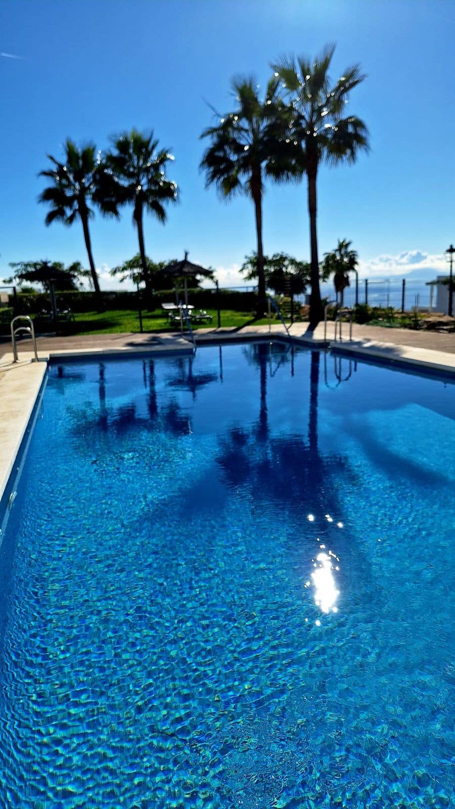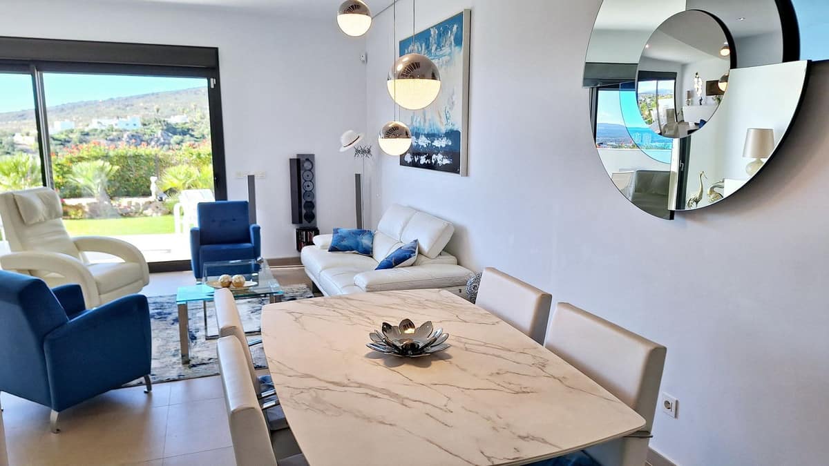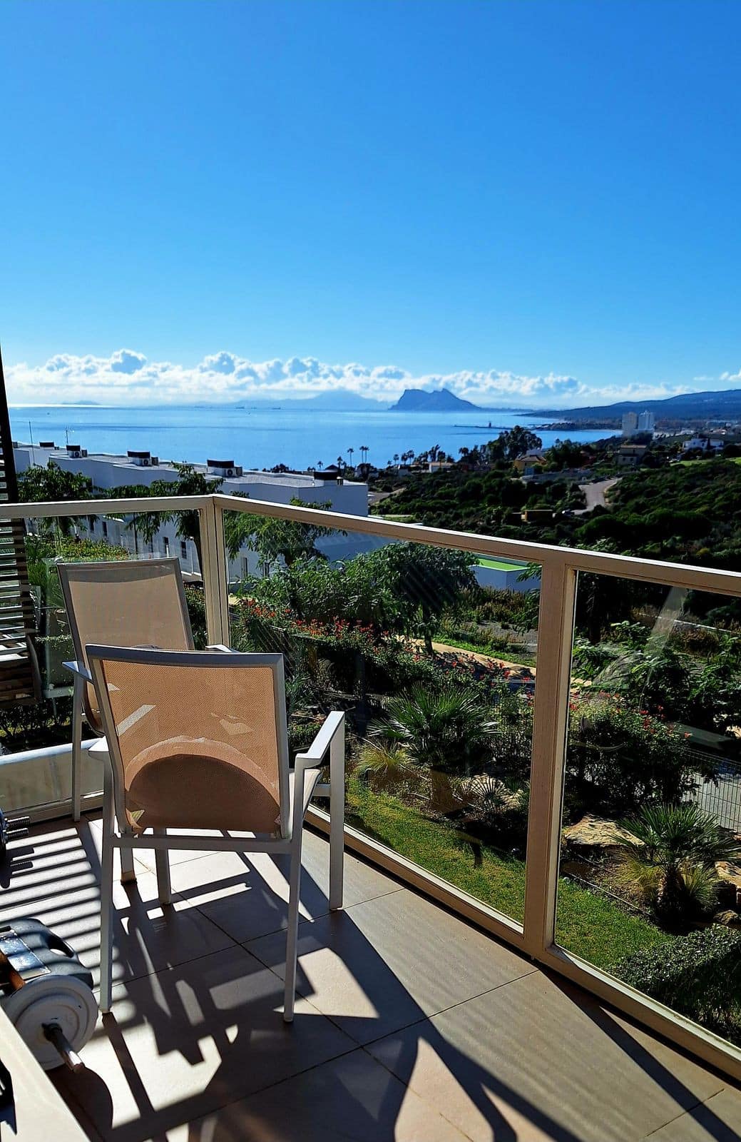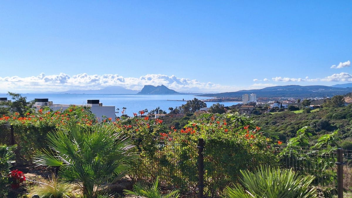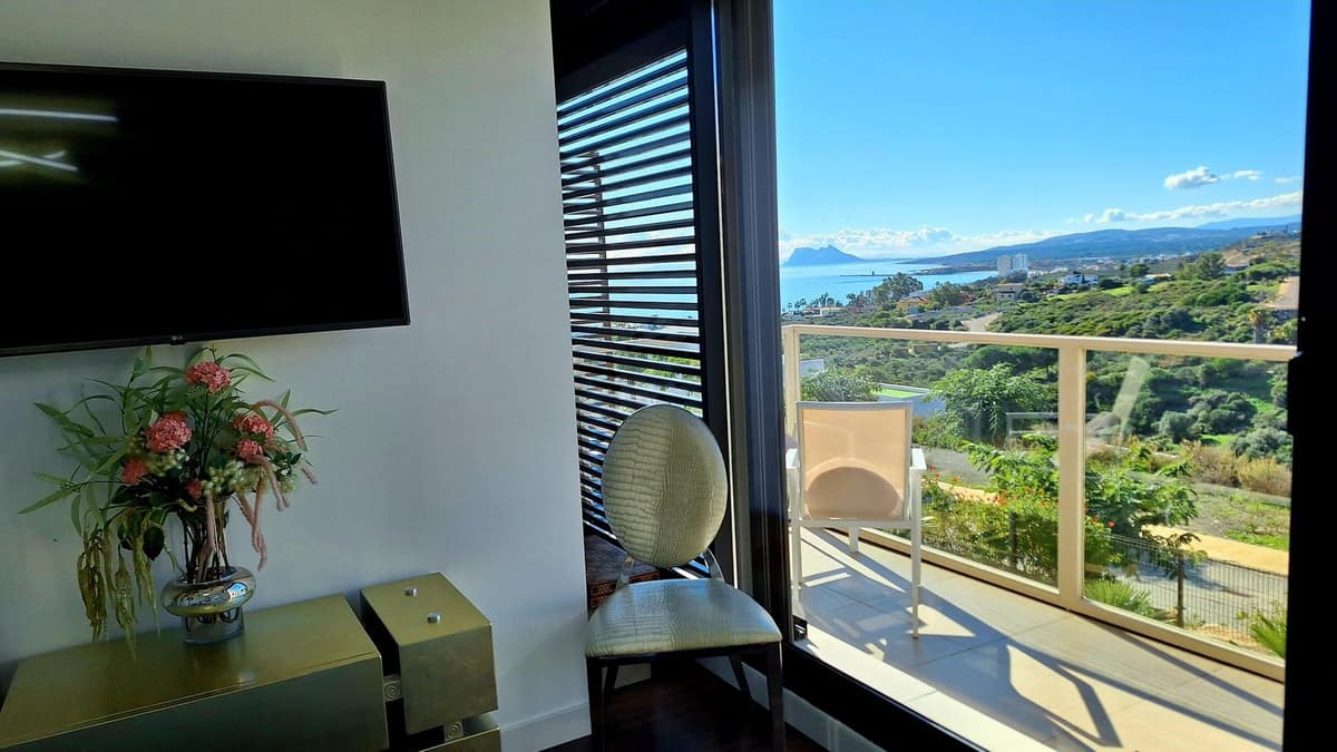 The gated, leafy residence offers a swimming pool and a particularly pleasant relaxation area, again with superb views of the sea, Gibraltar and the Moroccan coast.