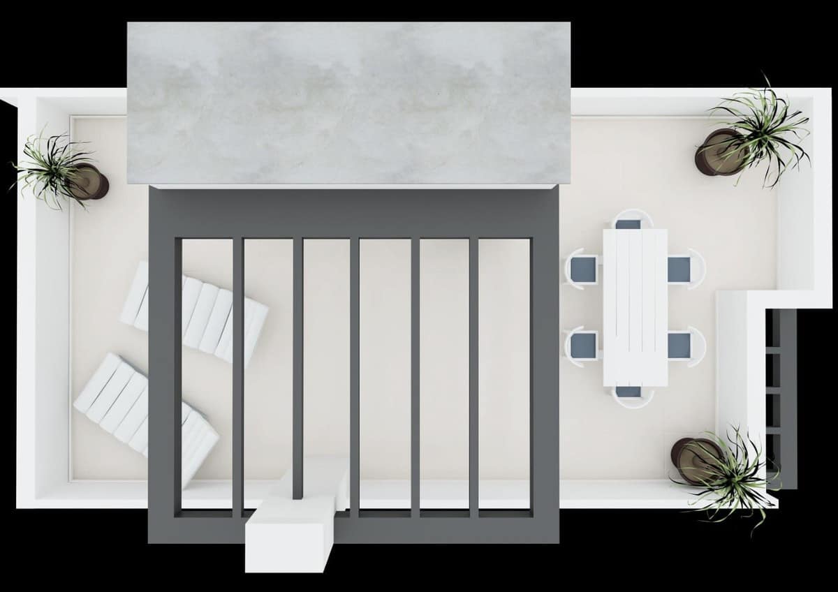 Spread across multiple levels, the property features two spacious terraces plus a large rooftop solarium complete with a private pool—perfect for relaxing, sunbathing, and entertaining against panoramic views. Inside, the open-plan living area flows seamlessly to a sleek fitted kitchen, ideal for both laid-back dining and hosting guests.