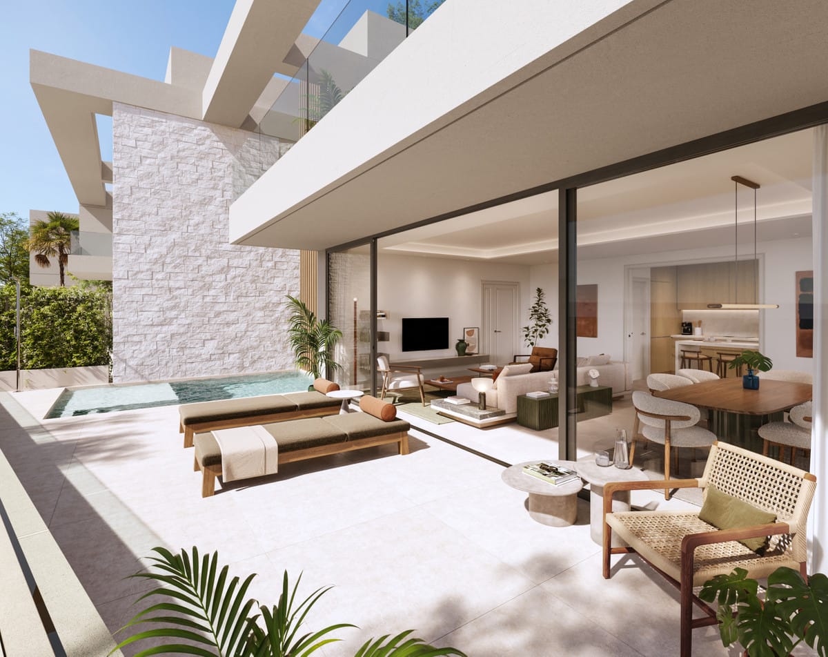Each home has been designed to offer spaciousness, natural light, and a constant connection with the surroundings. The interior spaces flow with elegance, distributed across several floors, with large rooms and top-quality finishes from renowned brands such as Porcelanosa. From your private terrace, the sea becomes part of your daily landscape, surrounding every moment with the calm and beauty of the Mediterranean.