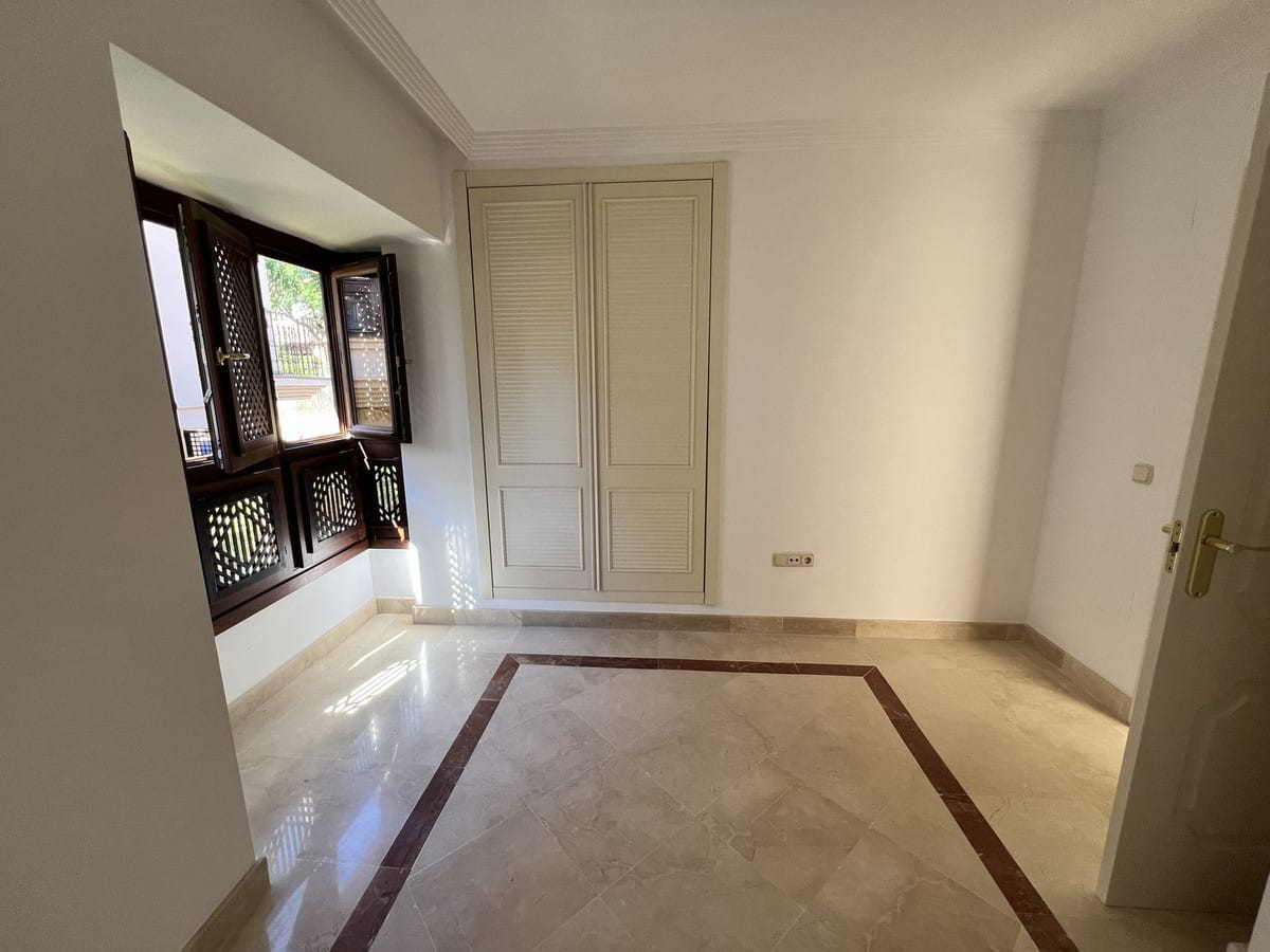 The communal areas include two swimming pools, one of which is open year-round, as well as a barbecue area with tables. Garden maintenance is included in the community fees.