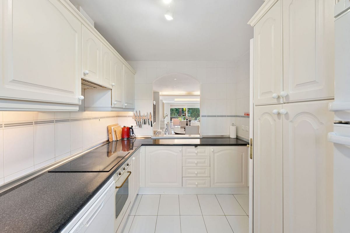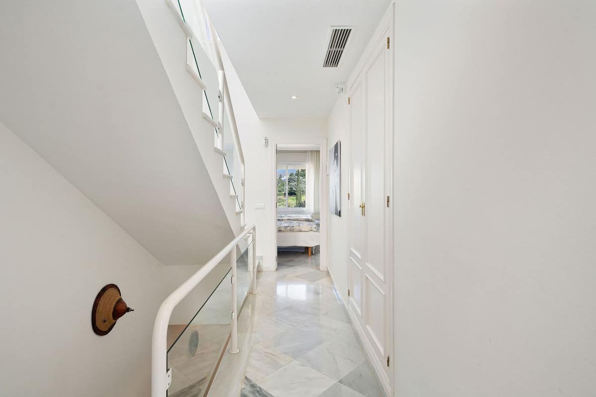 This well presented three-bedroom townhouse spans three spacious levels, combining comfort, space, and a great location in the heart of Nueva Andalucía. A wide selection of restaurants, cafés, bars, and boutiques are within walking distance, while Puerto Banús, sandy beaches, and renowned golf courses are just minutes away. The main floor features a well-sized kitchen with a separate utility room and a split-level dining and living area with an open fireplace. Doors lead to a private terrace with direct access to the communal gardens and swimming pool. All three generous bedrooms have private terraces. The top-floor suite stands out with a large private terrace and an additional terrace with built-in BBQ and open garden views — perfect for outdoor dining and entertaining. Additional features include a private driveway, spacious garage, three en-suite bathrooms, and a guest wc. Located within the sought-after El Palmeral community of just 46 townhouses, residents enjoy two swimming pools, a heated outdoor jacuzzi, sauna, gym, and beautifully maintained gardens in a secure and peaceful setting. A superb opportunity to own a large home in one of Marbella’s most desirable areas.