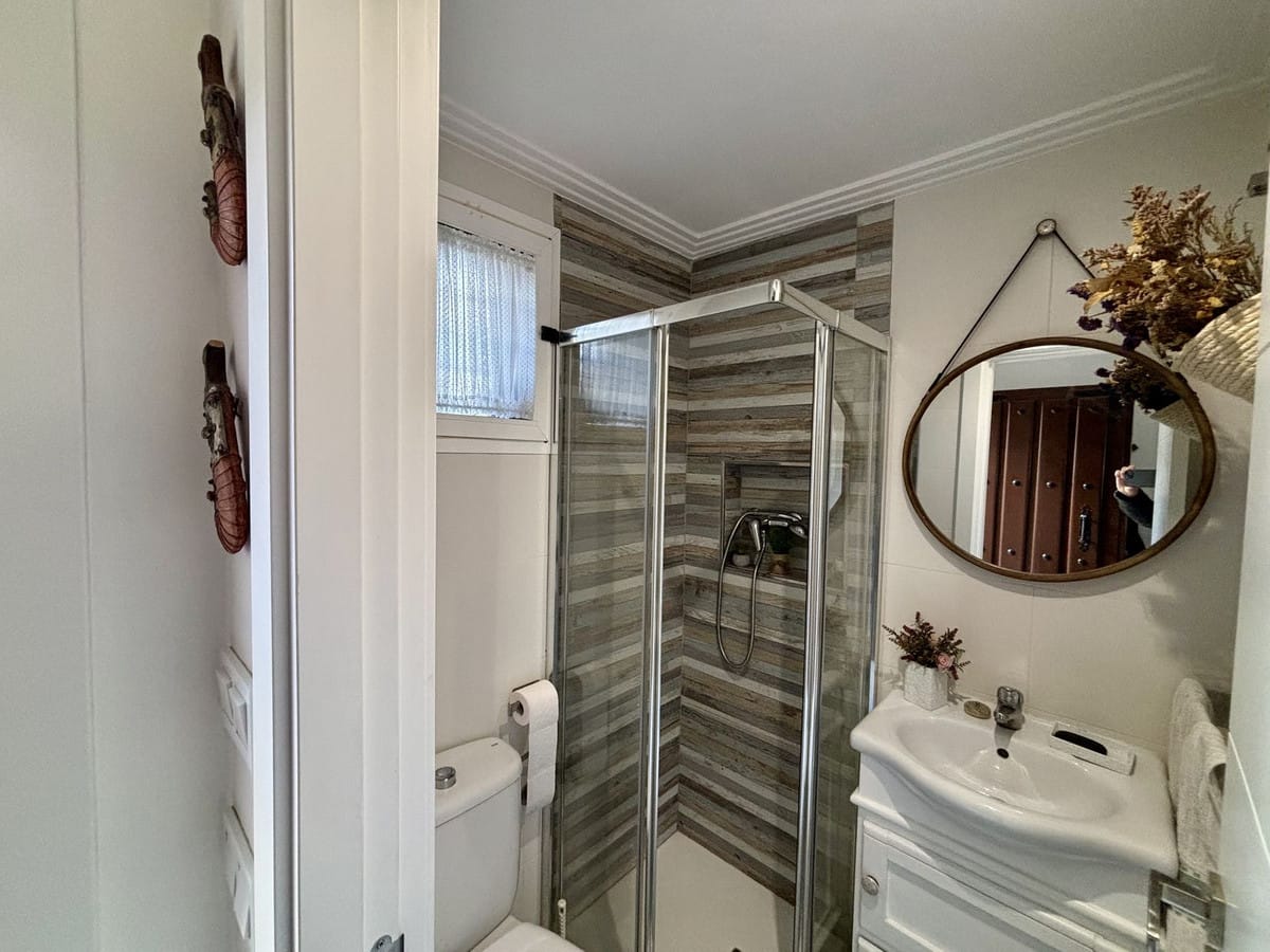 On the first floor, you'll find three spacious bedrooms equipped with built-in wardrobes and a second full bathroom. The house has been completely renovated, including plumbing and electrical systems, ensuring comfort and safety. It also has a solar installation, contributing to the home's energy efficiency.