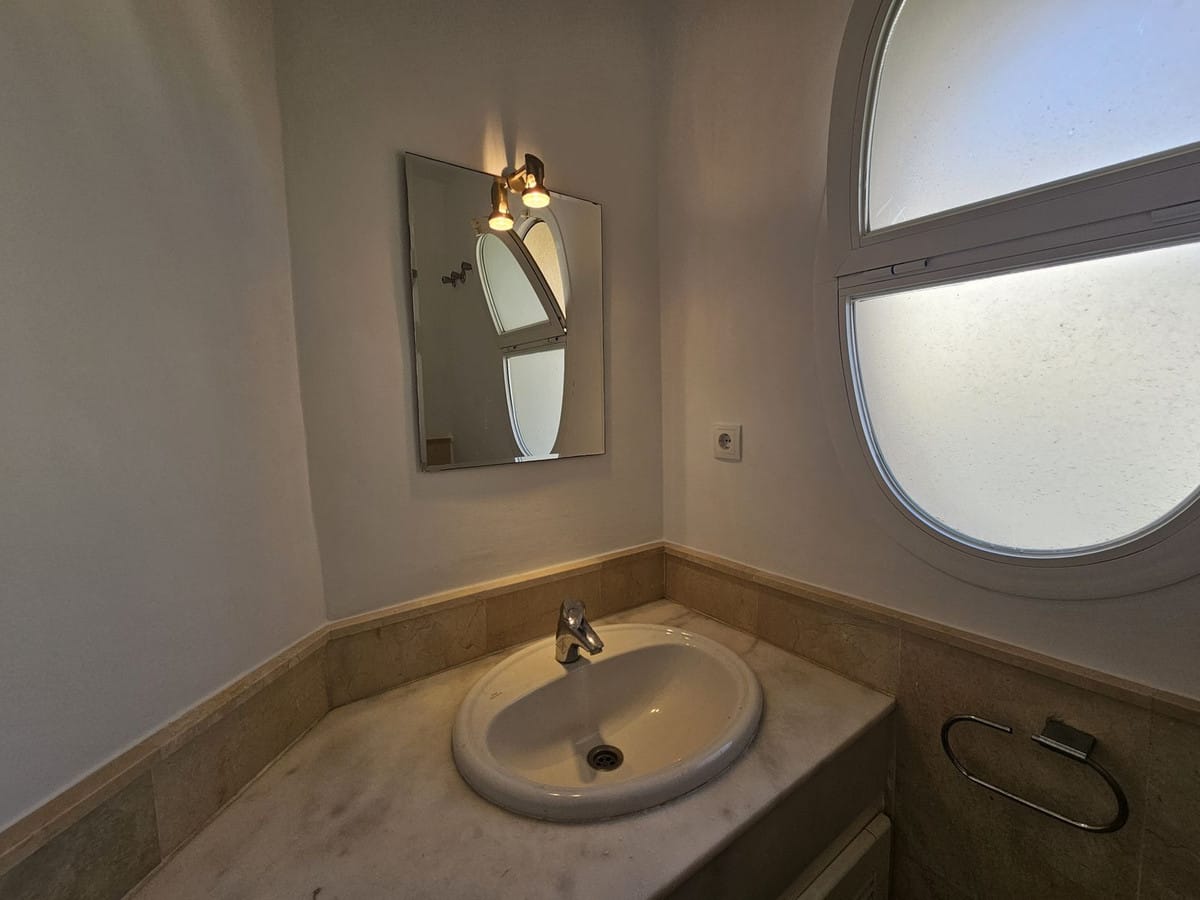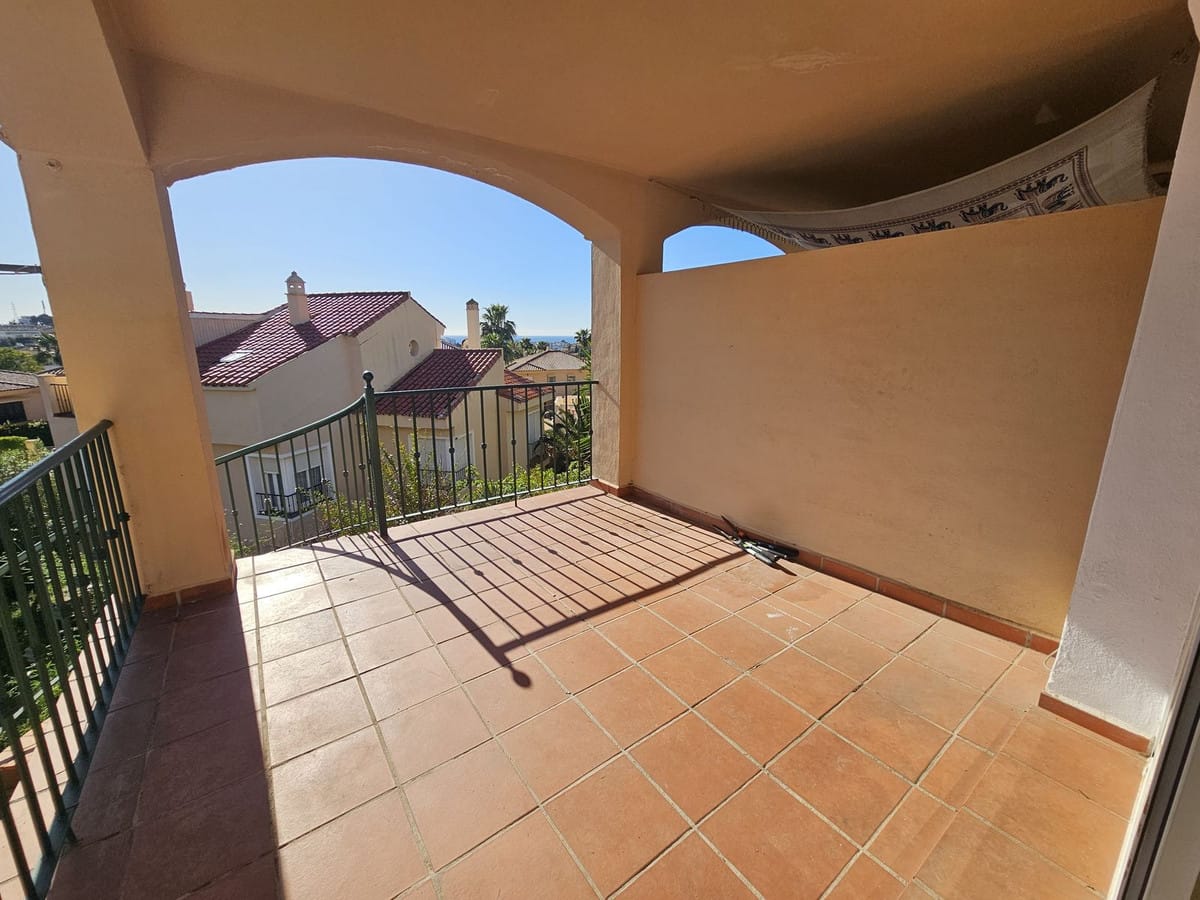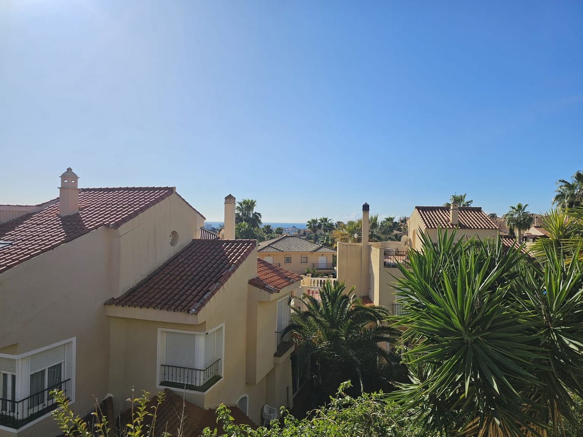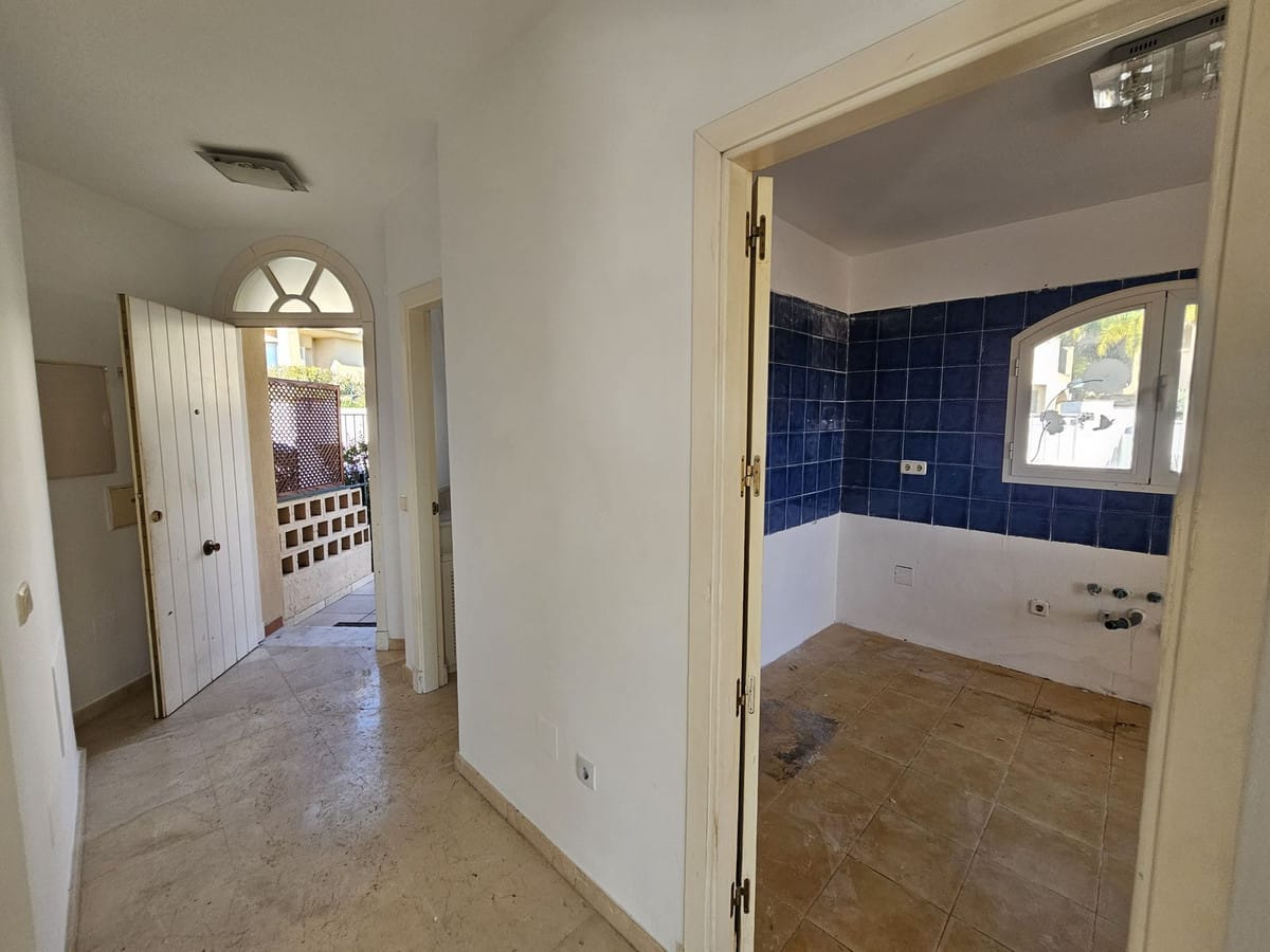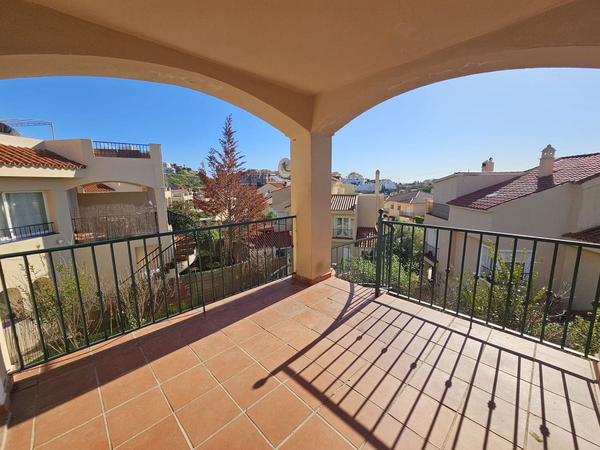 Lovely three-bedroom semi detached Villa in a gated community of Riviera Del Sol, the community has well kept gardens, two communal swimming pools, one of them being heated, and is a short walk to the beach and local amenities. The property has an open plan living and dining area with a built-in fireplace and access to the spacious terrace with views to the mountains, golf and pool; fully fitted kitchen; and guest toilet. The lower-level leads to the master suite with access to the private garden; two guest suites; and access to the private double garage. Other features include hot and cold air conditioning, electric shutters and fitted wardrobes. A great reform opportunity in a residential community.