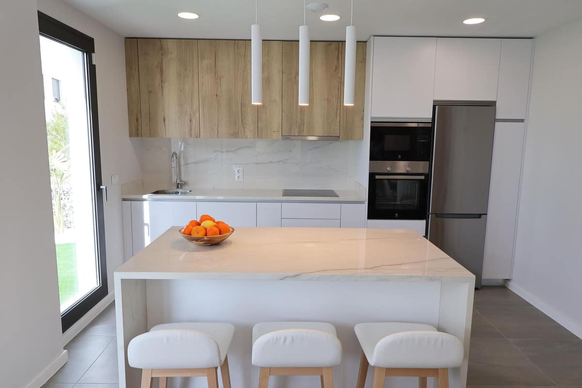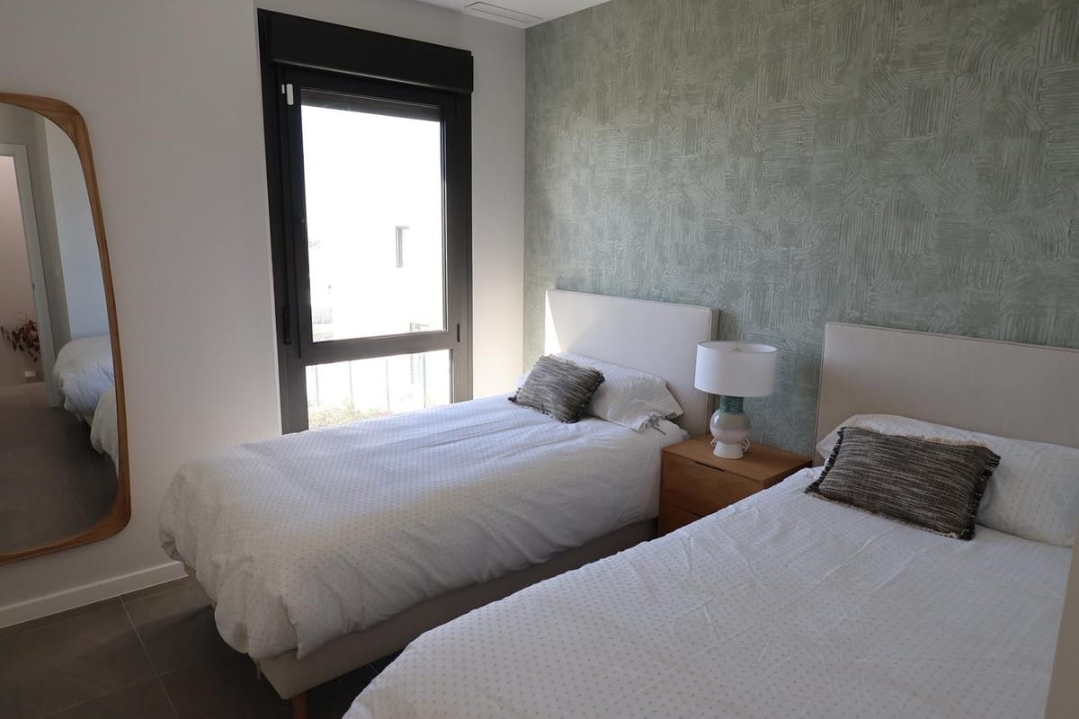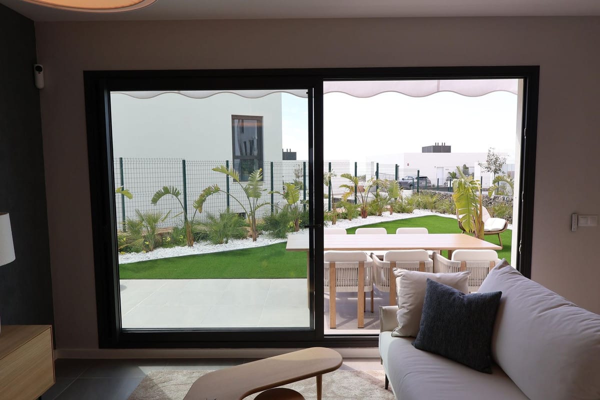 The property offers 96 m² of usable interior space distributed across two levels, complemented by a private plot of 168 m² with garden space, ideal for enjoying the region’s exceptional climate. The bright living area opens directly onto the outdoor space, creating a natural flow between indoor and outdoor living.