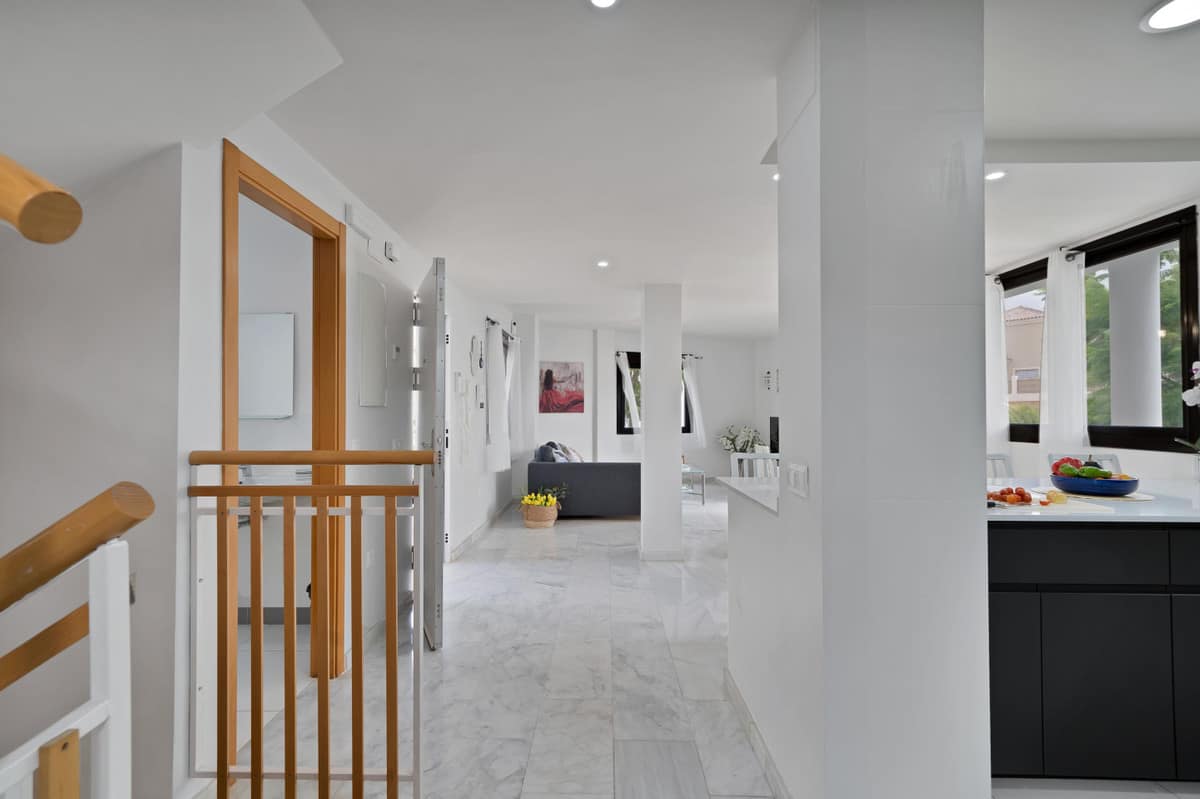 2 Living rooms, a spacious modern kitchen, 3 large bedrooms, 2 bathrooms, 1 guest toilet, laundry room, large solarium, garage, garden, and bright open spaces.