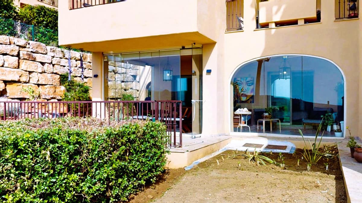 If you are looking for a private retreat where privacy and views take center stage, this corner ground-floor apartment is your property. Positioned in a prime spot within the complex, it stands out for its private garden and a glass-enclosed terrace that functions as a second living room overlooking the sea—guaranteeing spectacular sunsets.