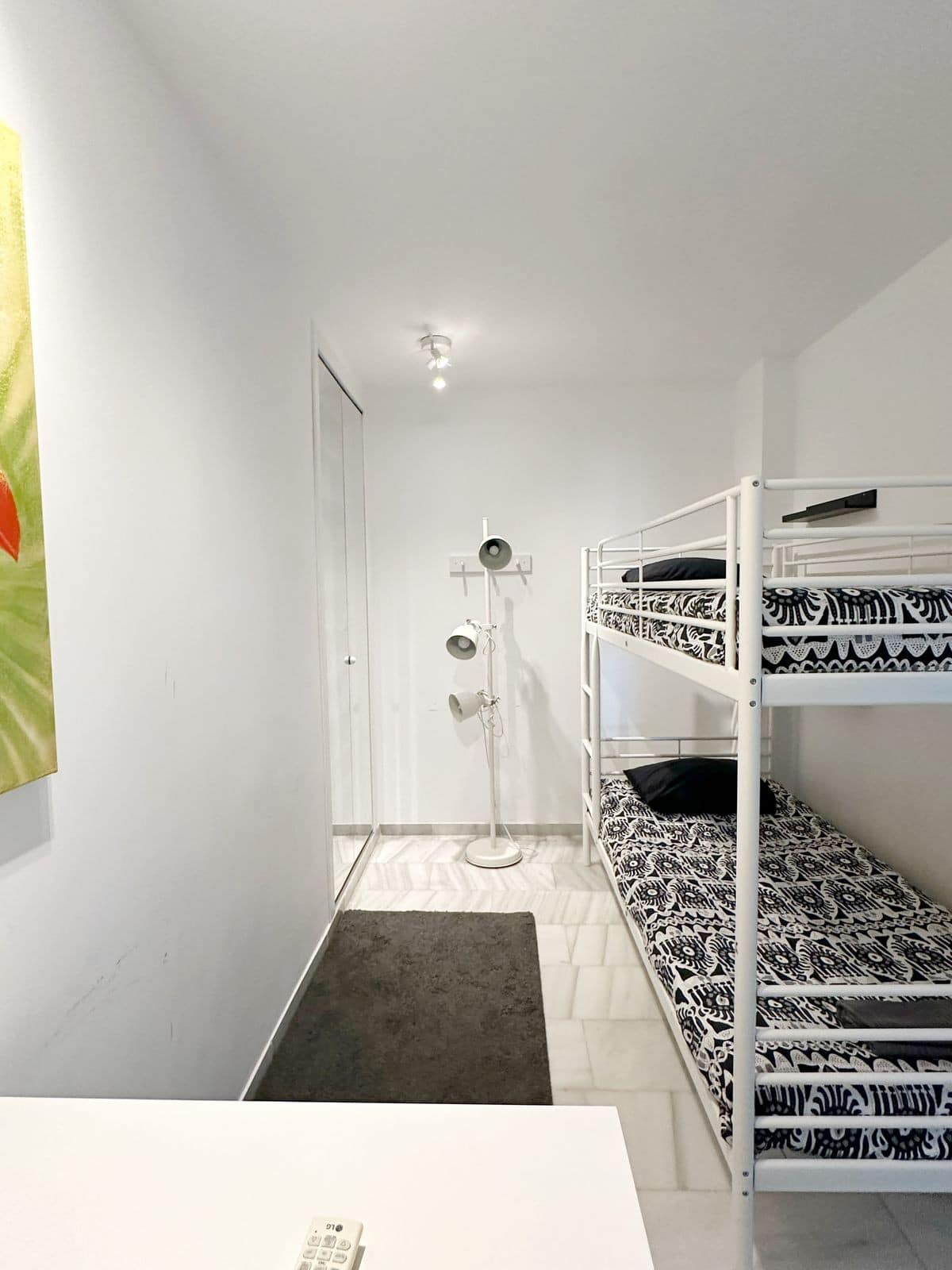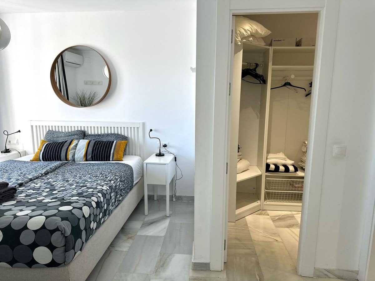 The apartment features four spacious bedrooms and a bright living room with an open-plan kitchen, creating a welcoming and functional living space. The master bedroom includes direct access to a walk-in wardrobe and one of the bathrooms, providing privacy and convenience. An additional bathroom is located between the other bedrooms, ensuring comfort for family members and guests.