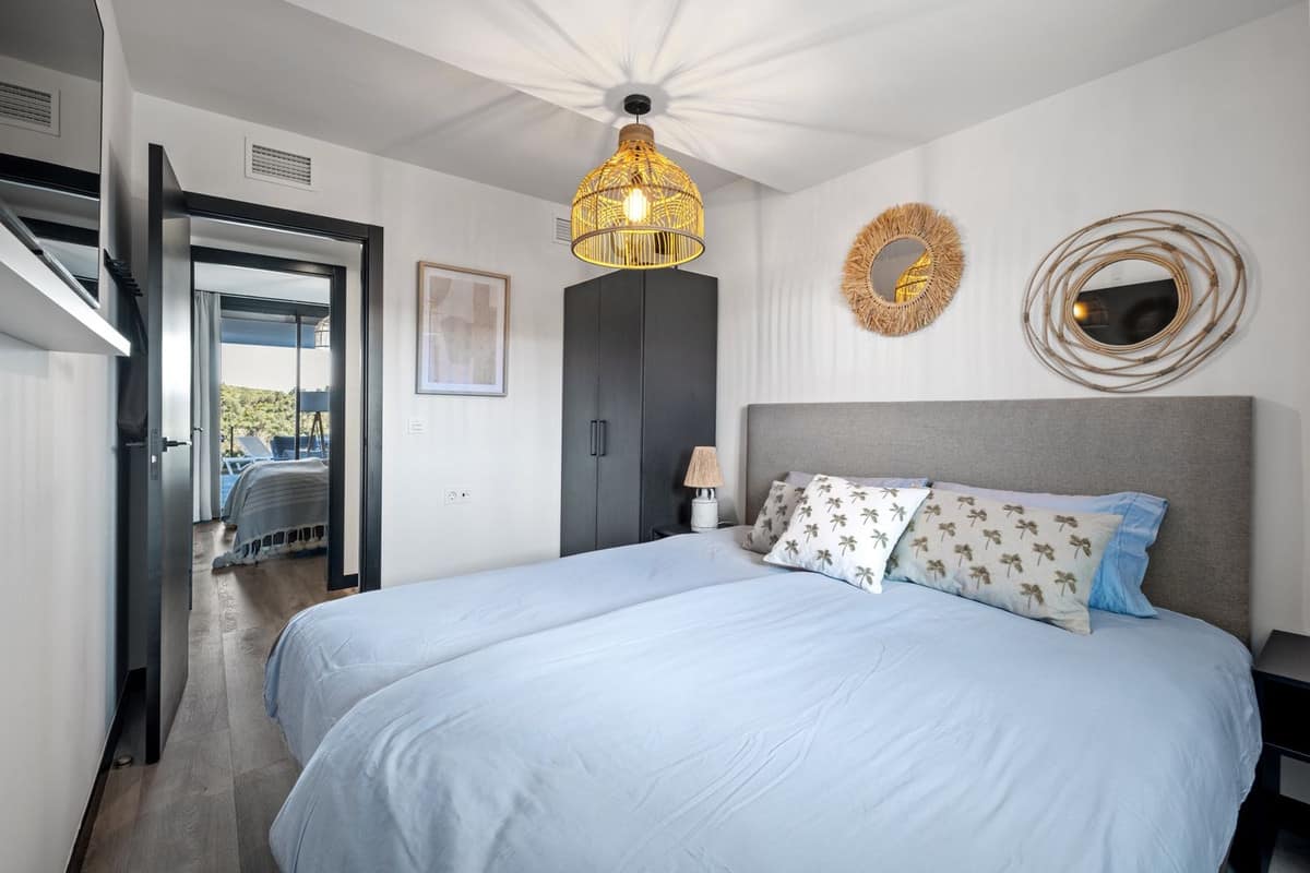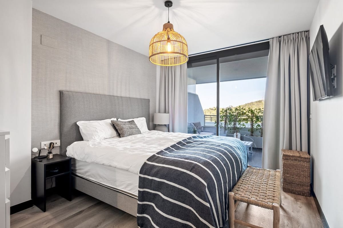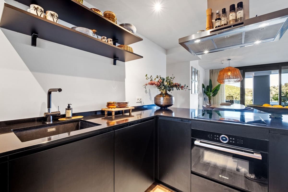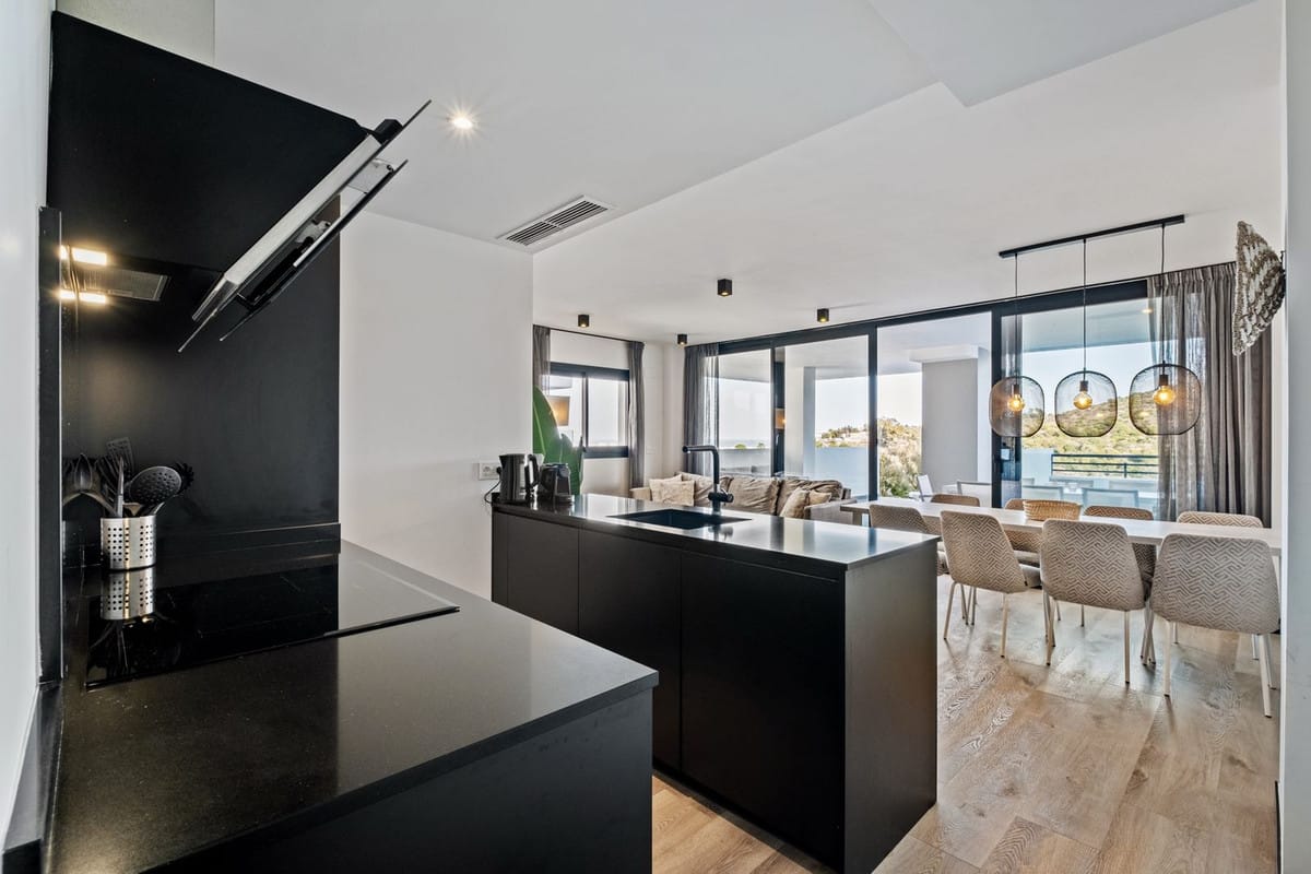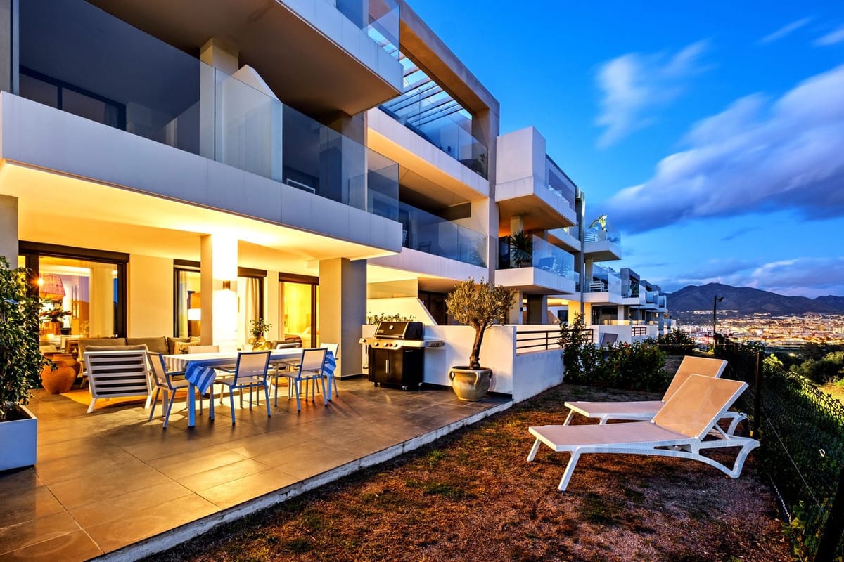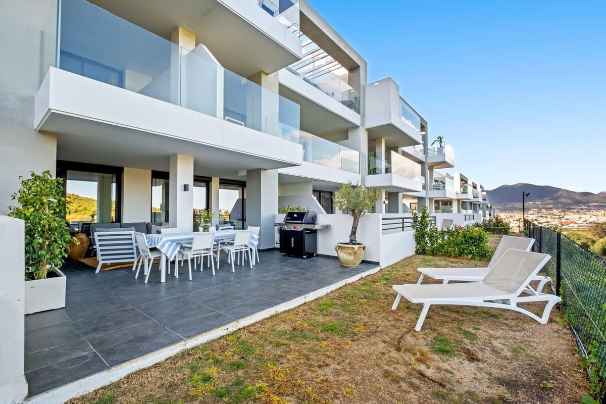 Featuring 4 spacious bedrooms and 2 full bathrooms, the open-plan kitchen flows seamlessly into the living area, creating a bright and contemporary space. Unlike other apartments in the complex, this home boasts a lawn garden, a rear terrace, a side terrace, and a front terrace—ensuring constant sunshine, maximum privacy, and spectacular views of the ocean, the nearby nature reserve, and the Mijas hills.