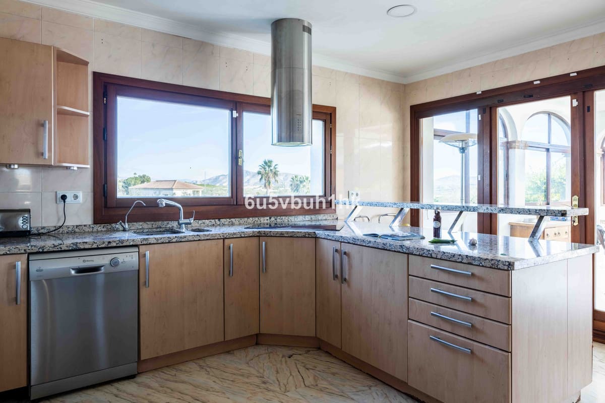The exterior of this country home enjoys superb panoramic southerly views towards Alhaurin el Grande town and the surrounding mountains. The gardens extend to around 7.500 m2, and there is heated pool with an electric pool cover and underwater lighting. There are various outbuildings.