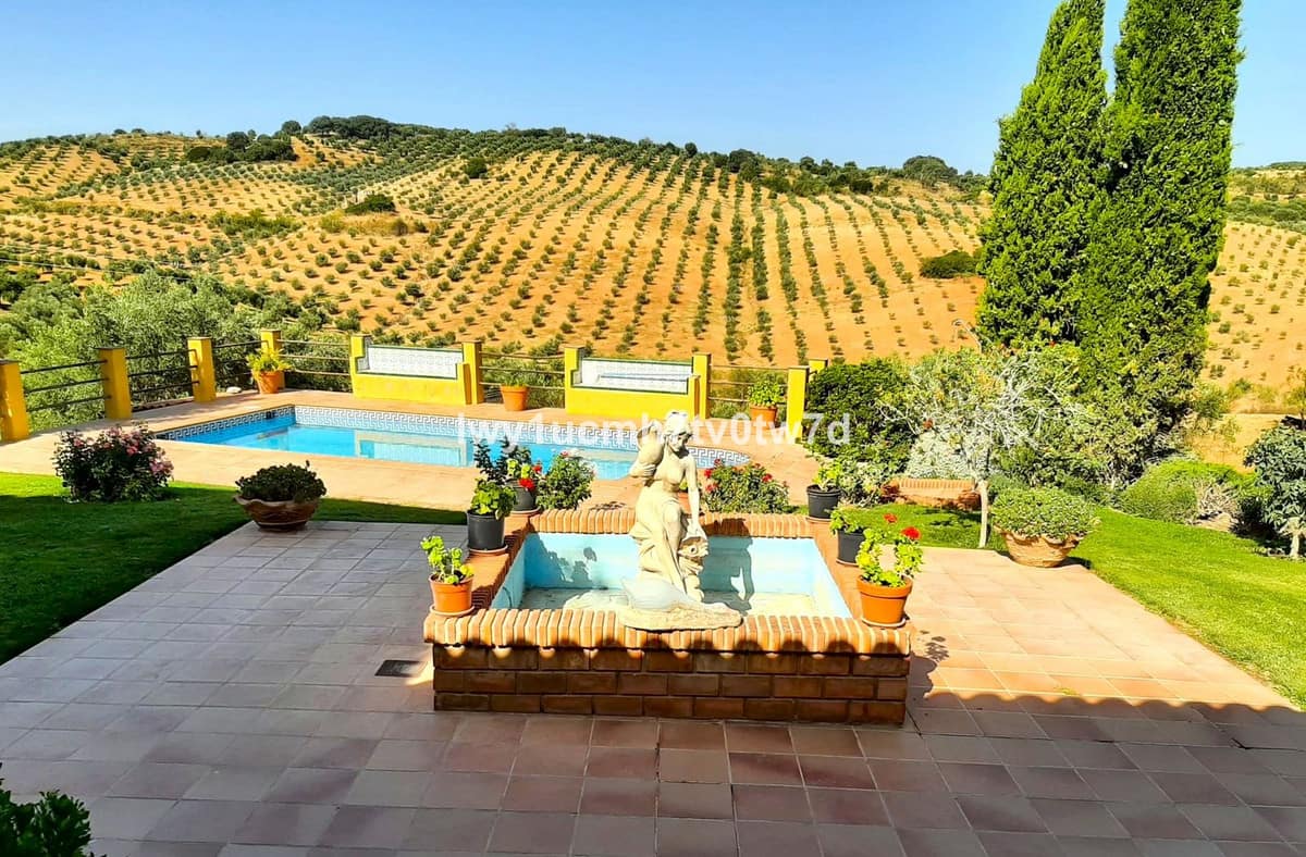 An Andalusian-style interior patio adds authentic charm and offers a peaceful outdoor space to relax while enjoying spectacular views of the countryside and mountains.