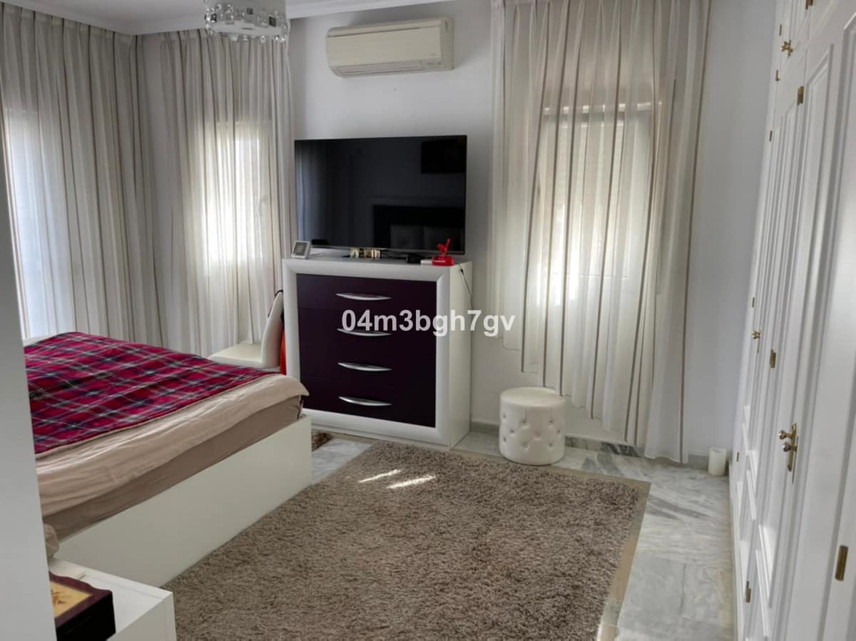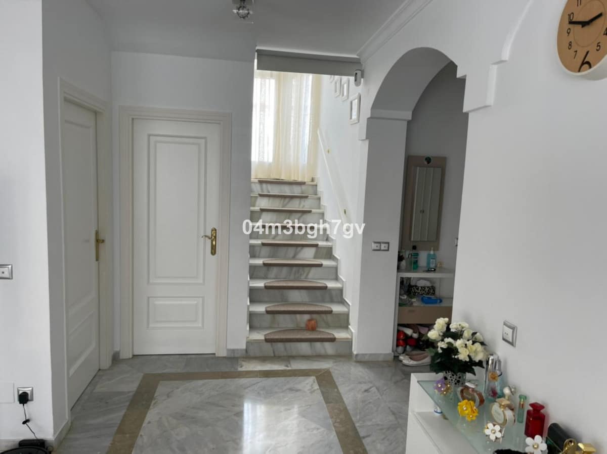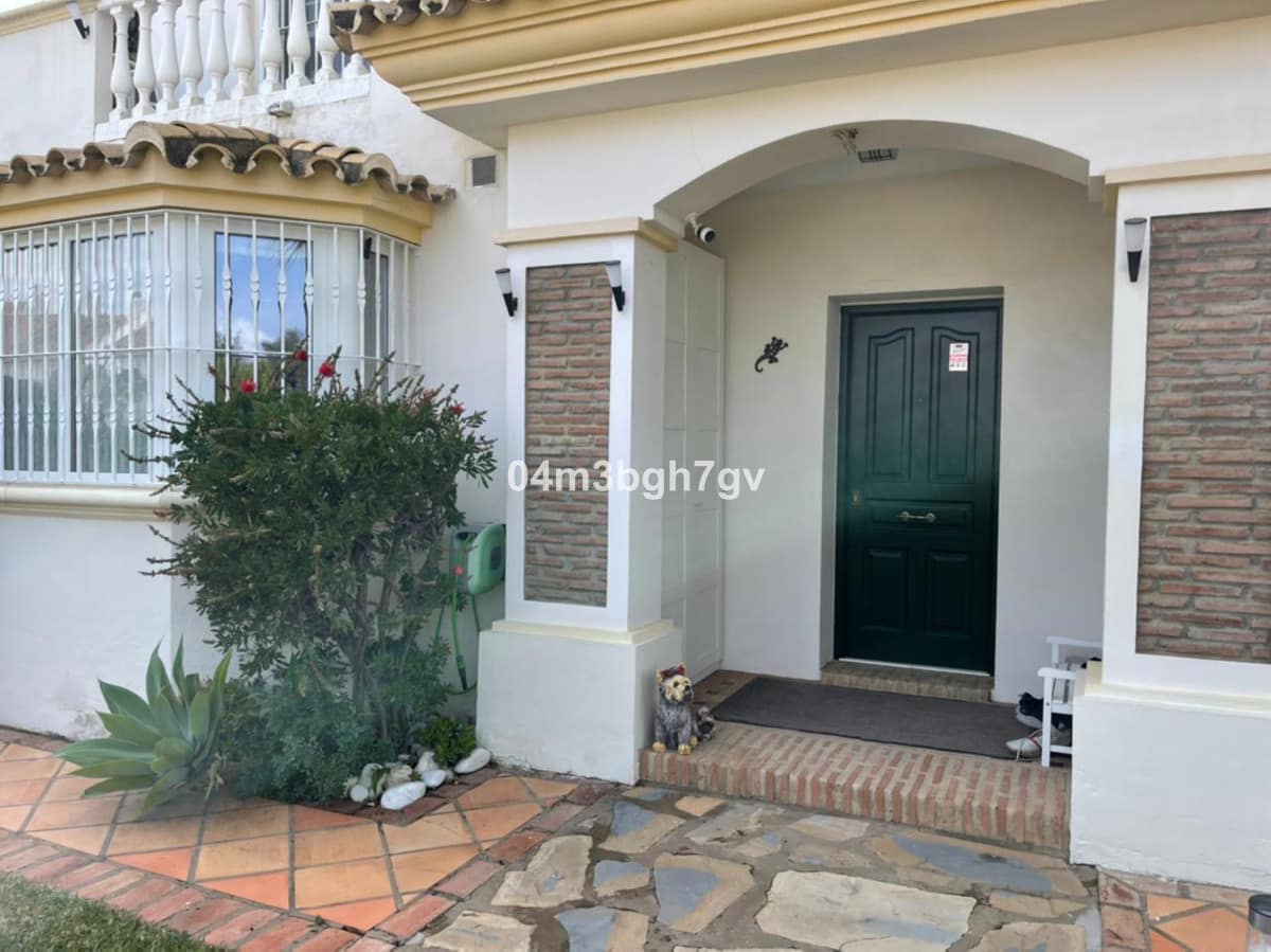 Wonderful villa just 800m from the beach, located in the privileged area of El Paraíso (New Golden Mile). This fantastic property has 4 bedrooms, one of the bedrooms is on the ground floor. The villa has 3 bathrooms, a large living room with fireplace, a fitted kitchen and a 421 m2 fenced garden with fruit trees. The property has great character, ideal for families or as a holiday home. there is a parking space. the villa is located in a small gated community with security consisting of 9 houses with a common area for recreation and swimming pool.”
