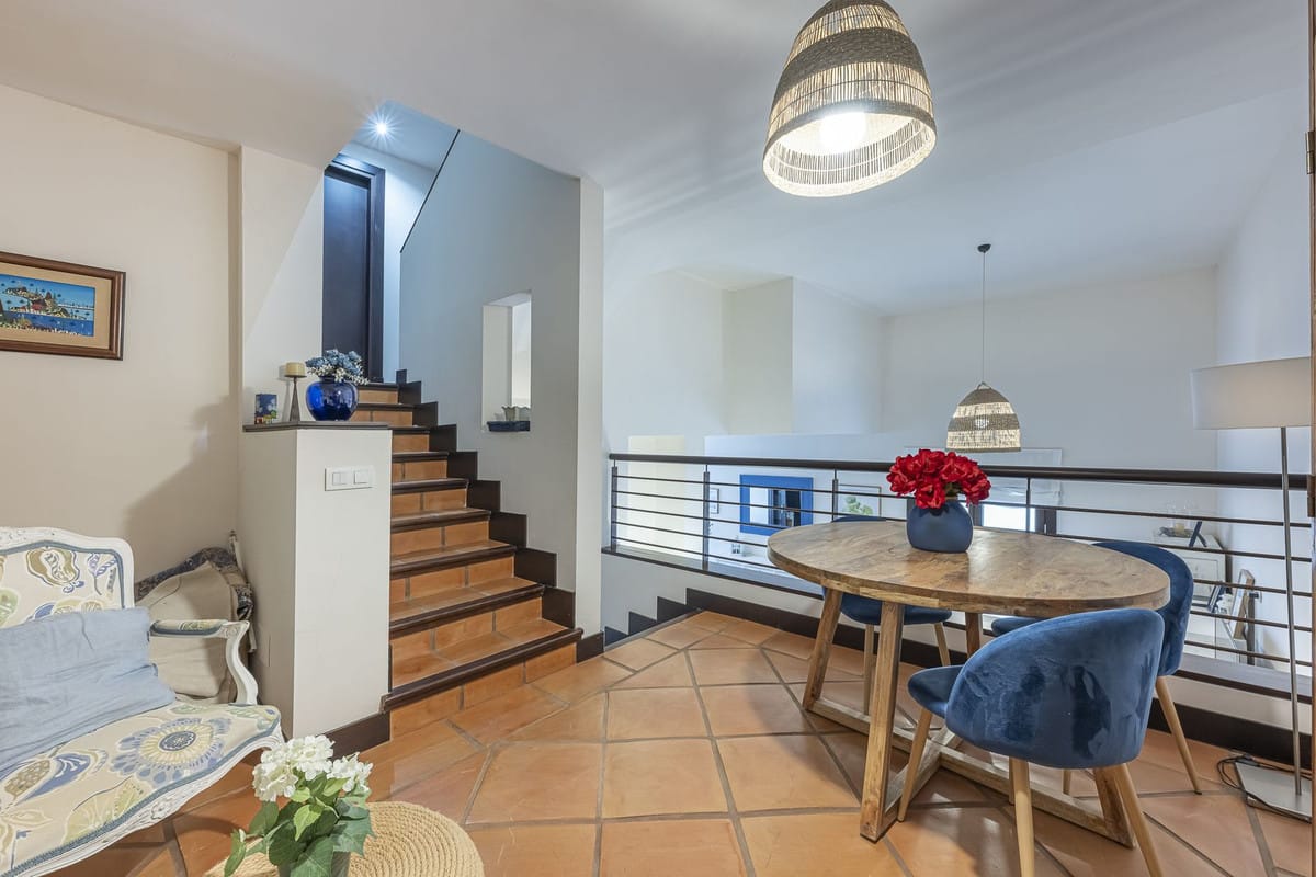 Main Level: A bright and spacious lounge with dining area, a fully fitted separate kitchen, guest lavatory, and a private terrace.