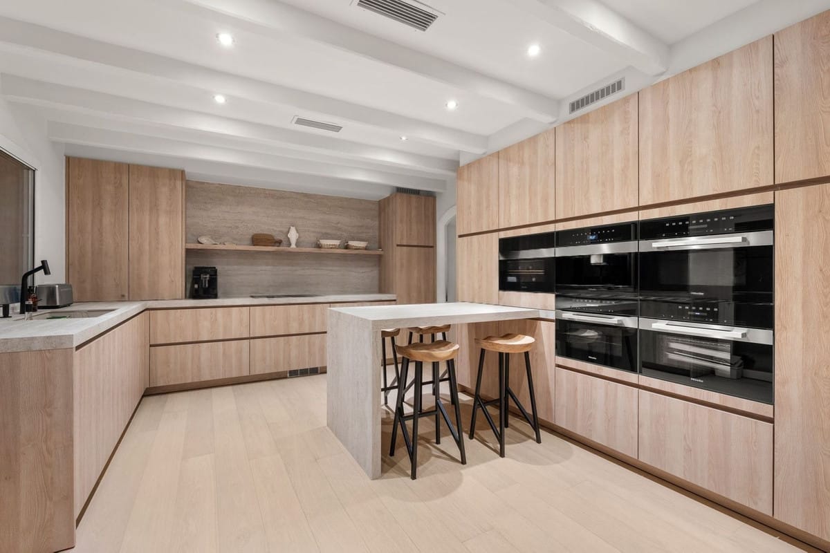 Set on a generous 1,307 m² plot, the villa offers 391 m² of built living space, thoughtfully distributed to maximise light and flow. The bright living room with fireplace connects seamlessly to the dining area, creating a warm and inviting atmosphere. A separate modern kitchen, finished to a high standard, provides both style and everyday functionality.