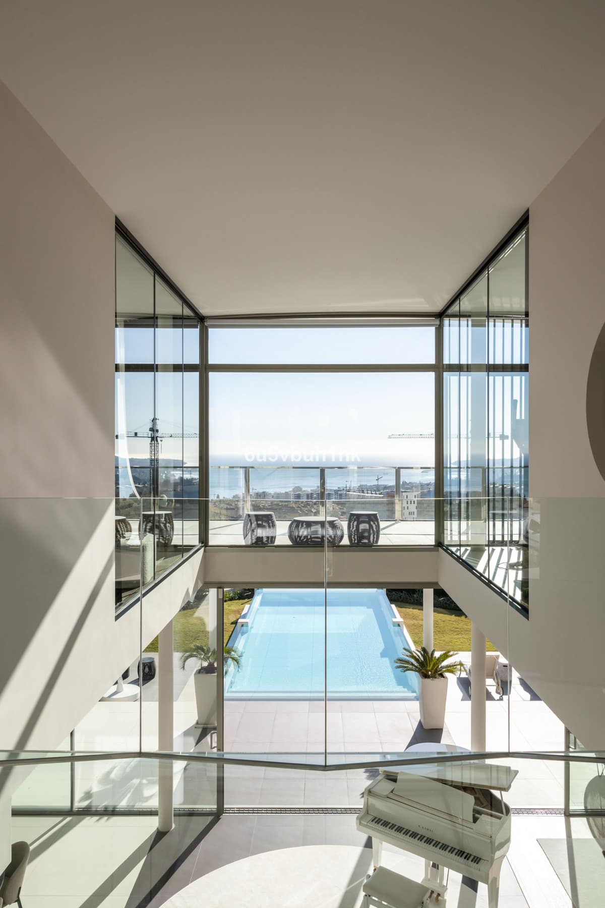 One of the villa's most striking features is the infinity pool that seemingly merges with the Mediterranean horizon. Whether you're taking a refreshing dip or lounging on the expansive terrace, the panoramic views of the Mediterranean and Fuengirola are simply breathtaking. The fully glazed terrace provides comfort for enjoying the outdoors all year round.