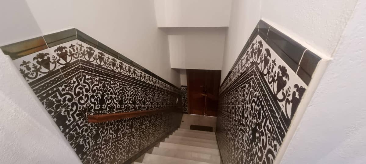 <p>A really lovely handcrafted staircase with wooden gallery style bannisters take one to the top floor . The top floor has the same open plan living areas , a bathroom and two bedrooms , access out ti¡o a spacious roof terrace with beautiful views.</p>